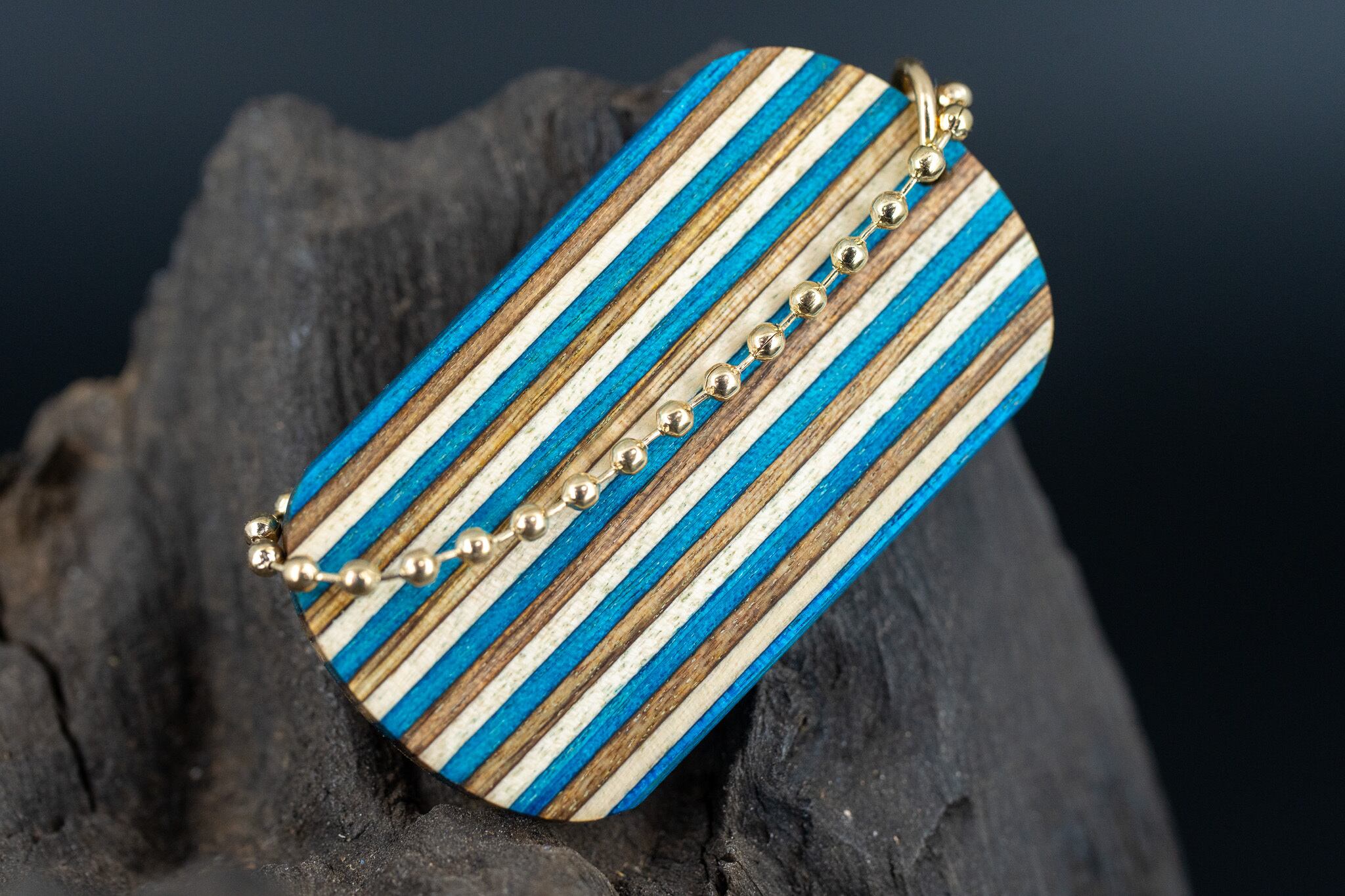【 北欧の白銀 】バーチ 寄木 ドッグタグ 象嵌 十五夜きつね