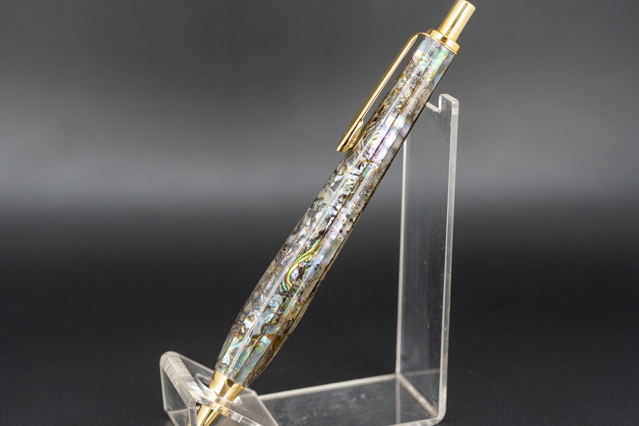 こちらはメキシコ原産のアバロンを2㎜幅にカットし、樹脂で閉じ込めました。