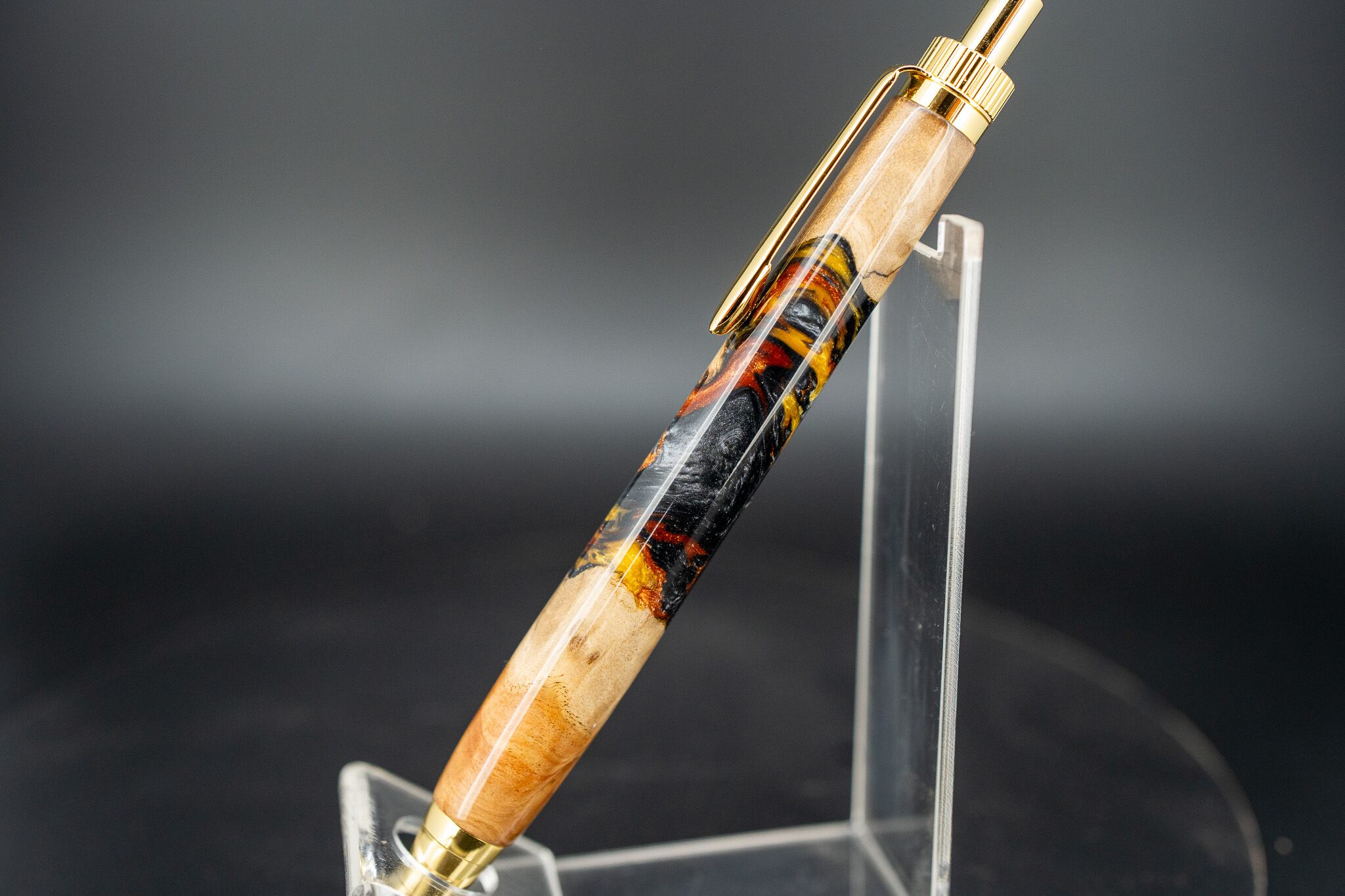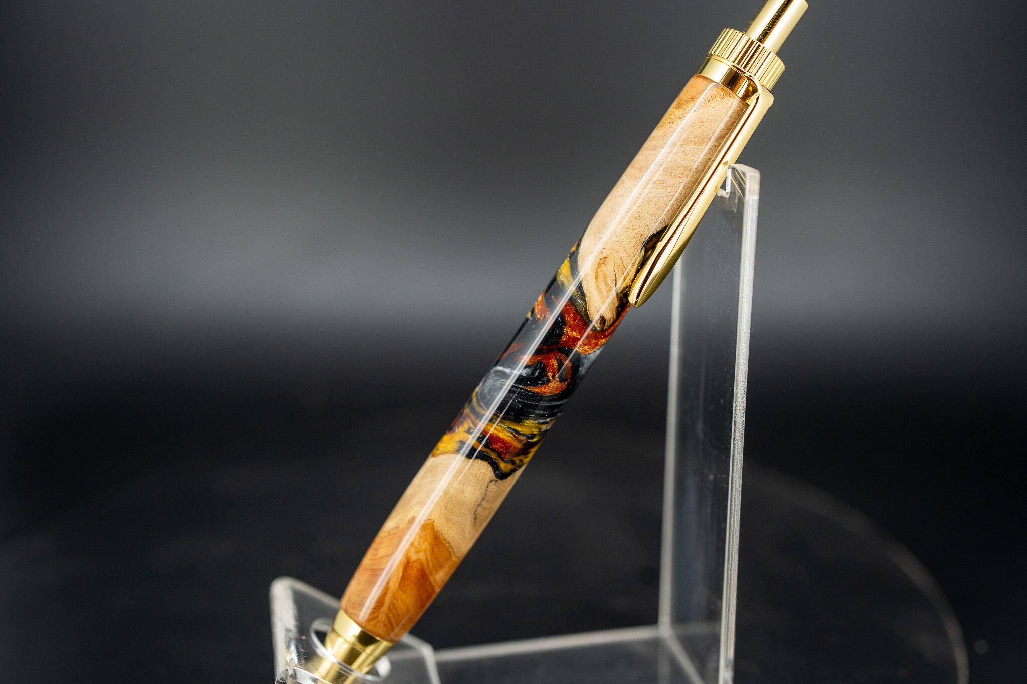 ナチュラルな木目と激しいブカラーレジンの対比が美しい一品。