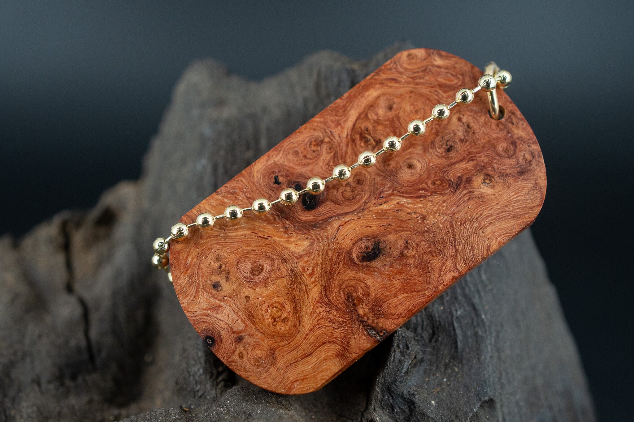 【朱色の銘木】 本花梨瘤 ドッグタグ 木象嵌 勇魚と惑星