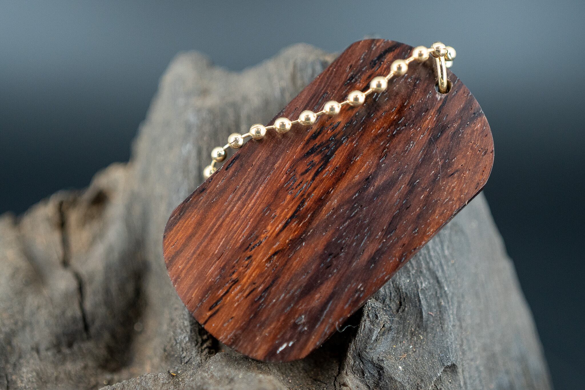 【唐木三大銘木】 紫檀 (ソノケリン) ドッグタグ 象嵌 三日月とたぬき