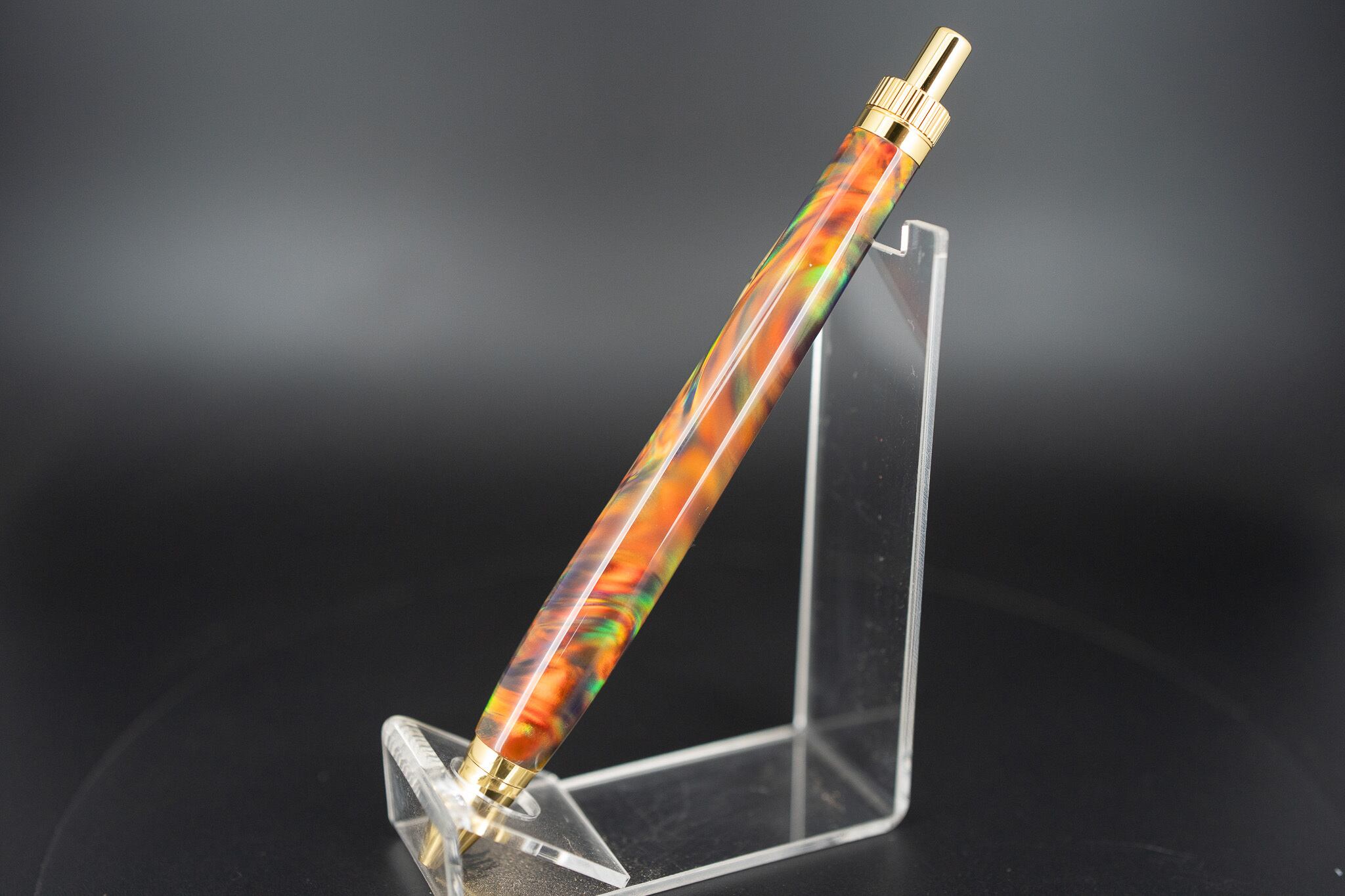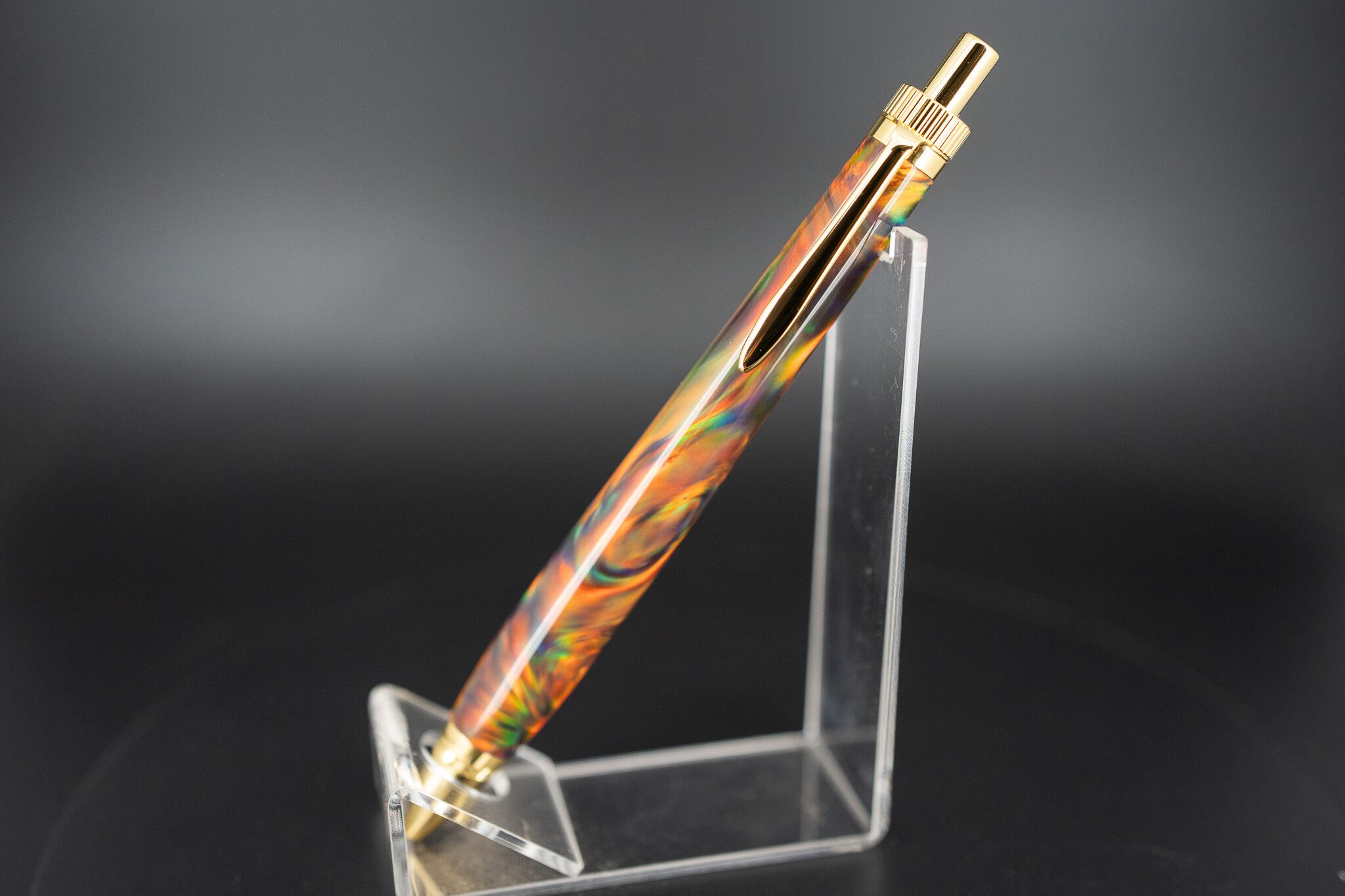 日本が誇る新技術により、樹脂とシリカ粒子(天然オパールの構成成分)から製造されています。ハイブリッドオパールの結晶からペン一本分を贅沢に切り出し、磨き上げました。