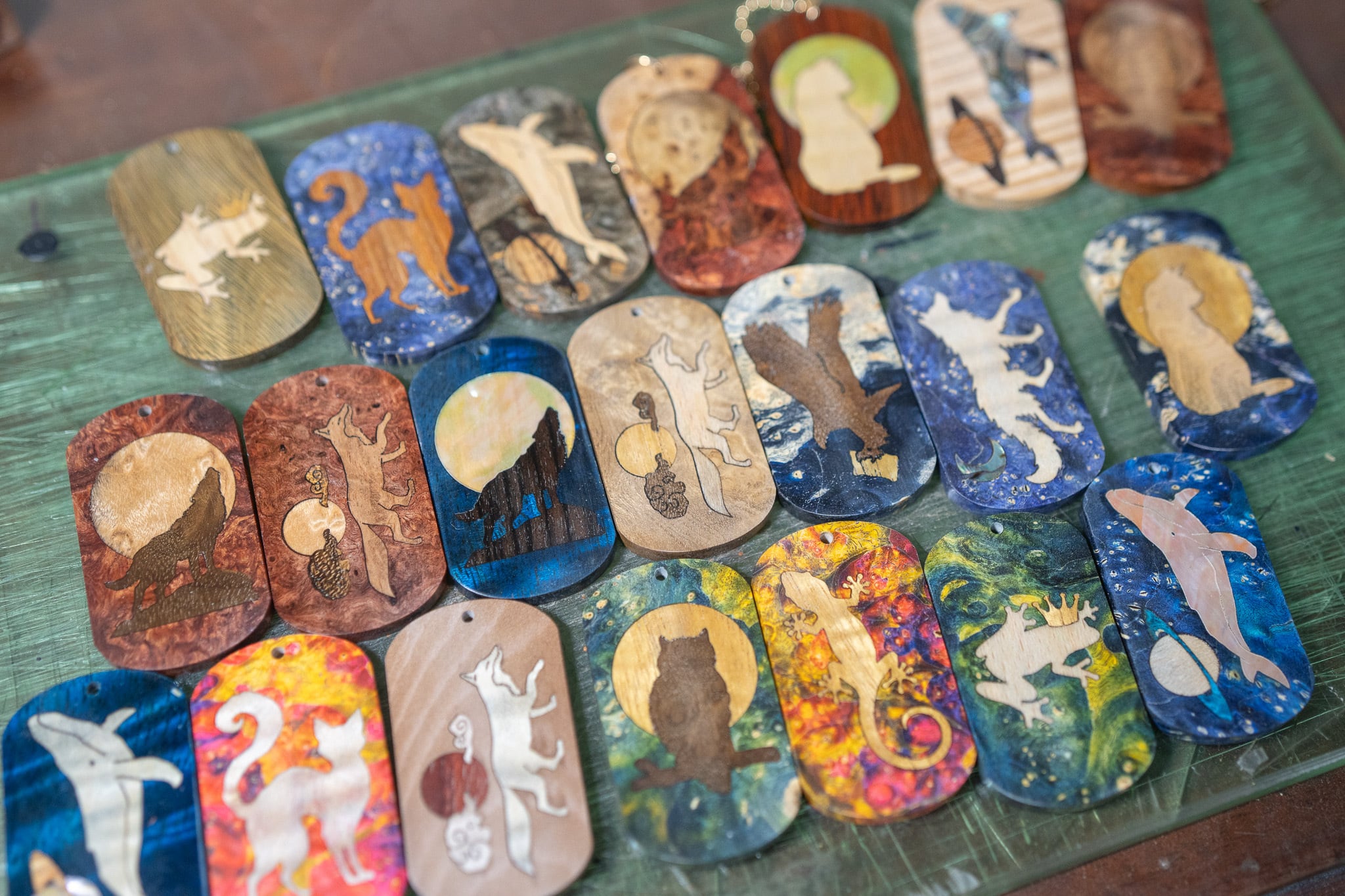 【カナダの象徴】ハードメープル 瘤杢 スタビライズウッド ドッグタグ 象嵌 勇魚と惑星