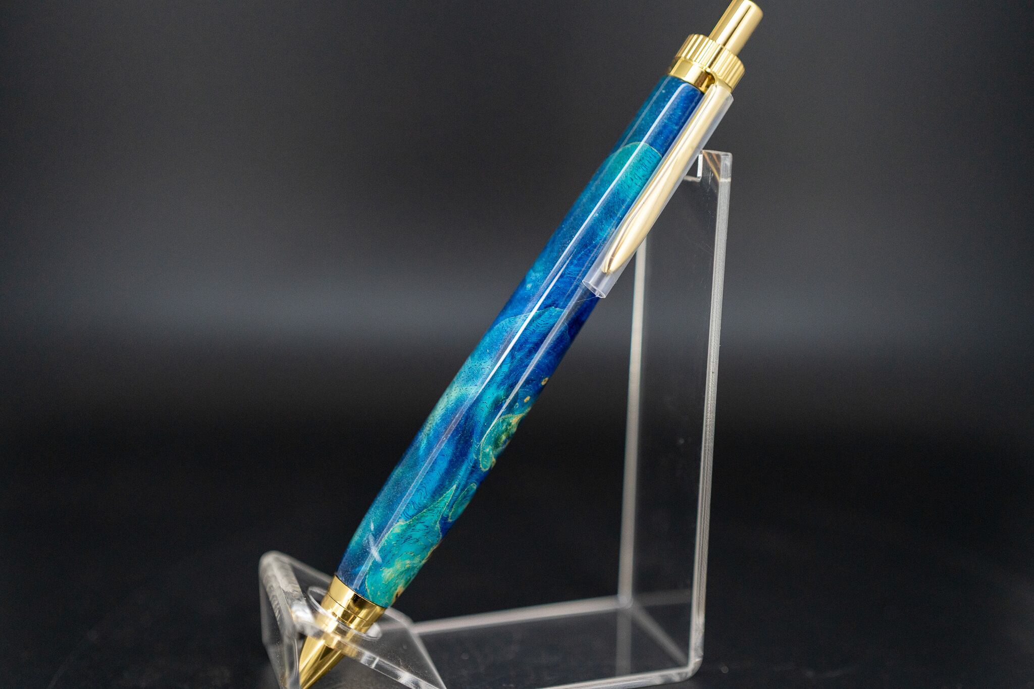こちらは、メープルバールに青色の樹脂で染色した一本。