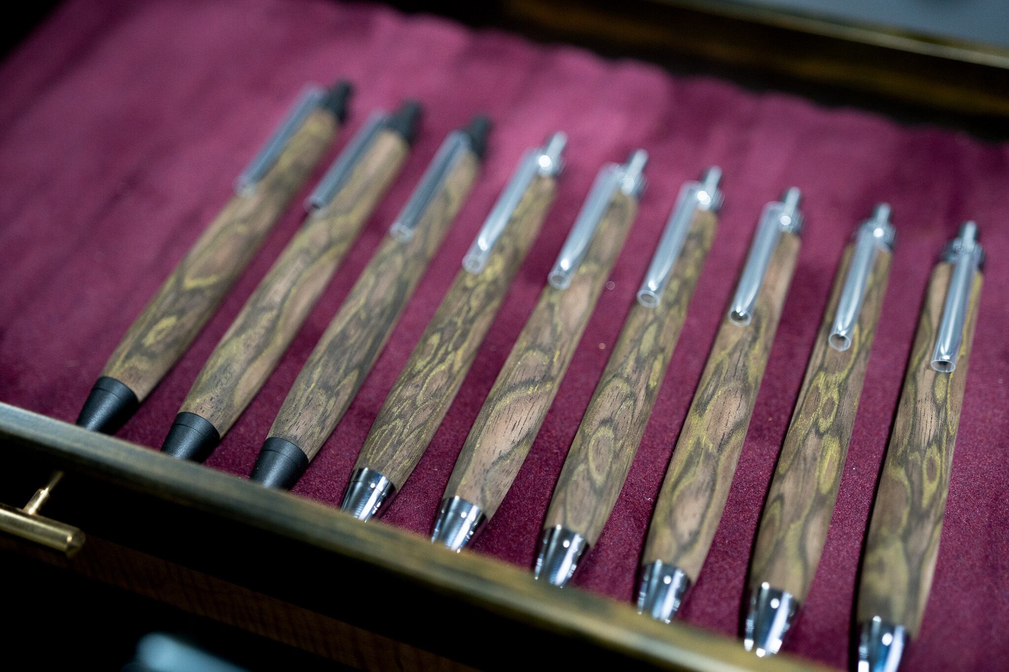 金杢犀に託されたこの逸品を、極限まで研ぎ澄ませた刃物で仕立てました。