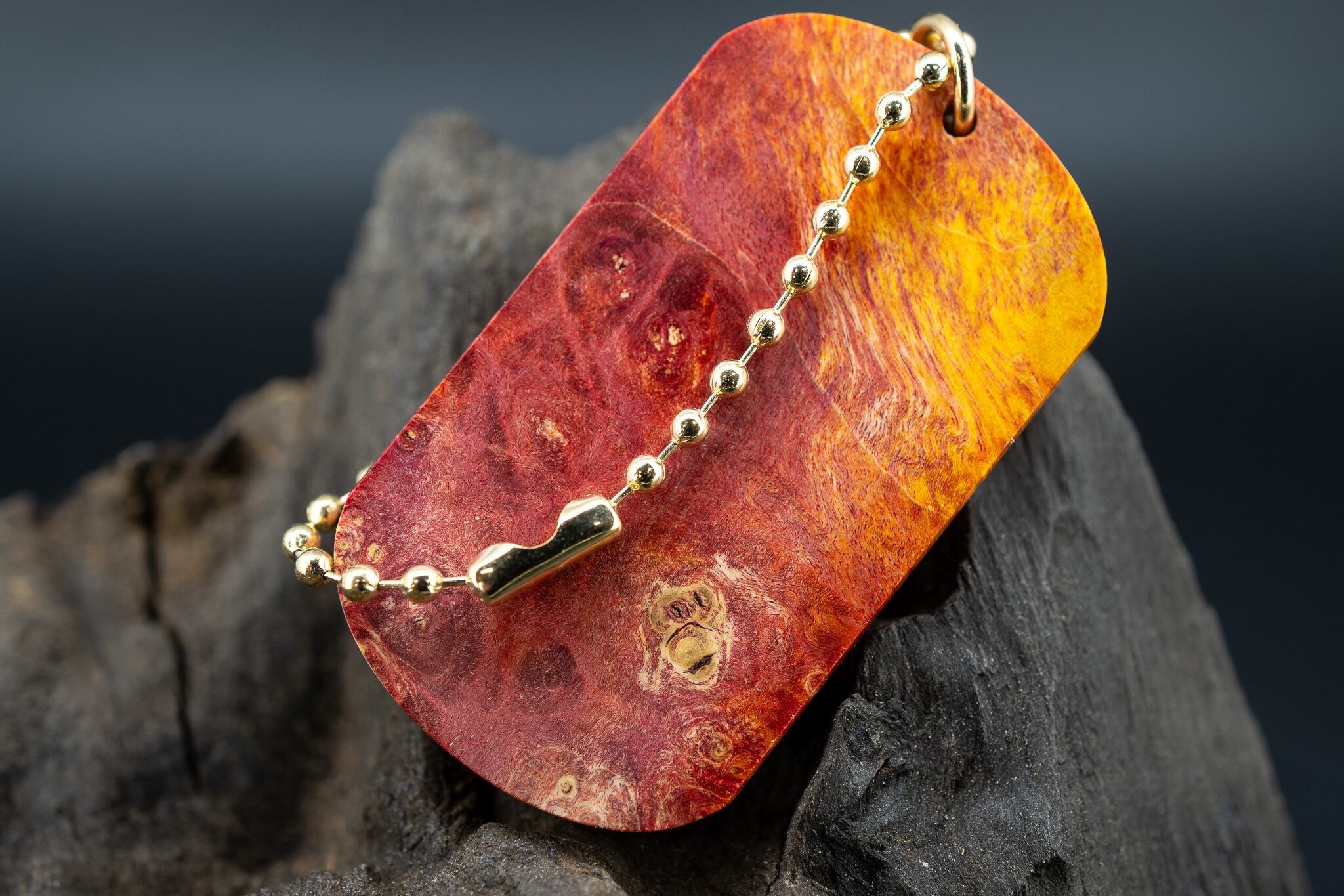 【カナダの象徴】ハードメープル 瘤杢 スタビライズウッド ドッグタグ 象嵌 木登りトカゲ