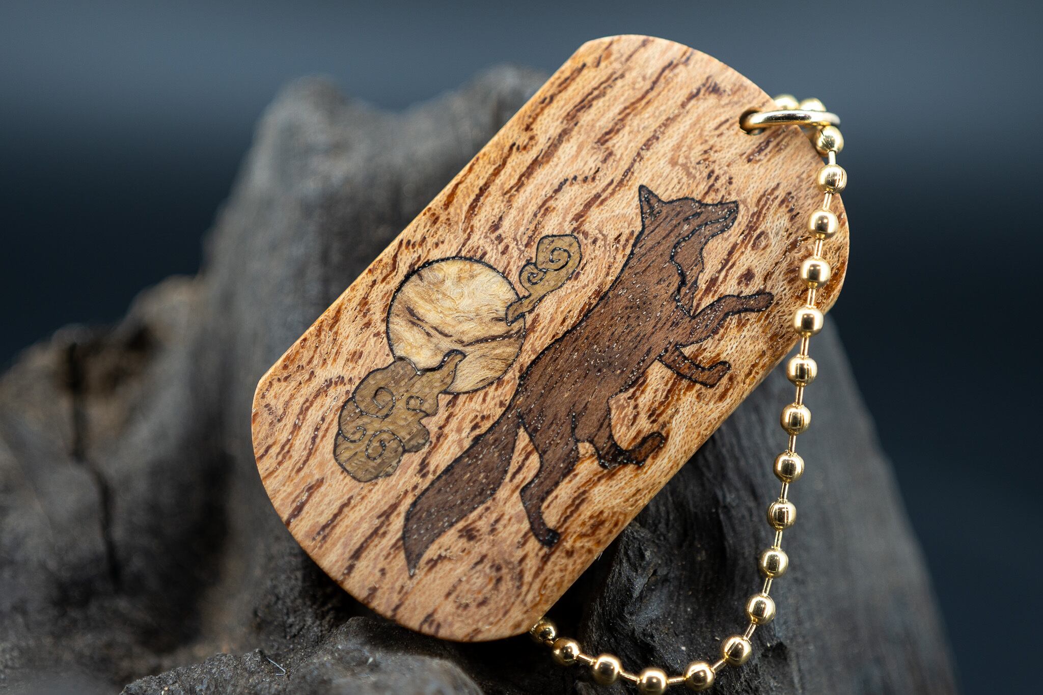 【日本を代表する巨木】 欅(ケヤキ) ドッグタグ 象嵌 十五夜きつね