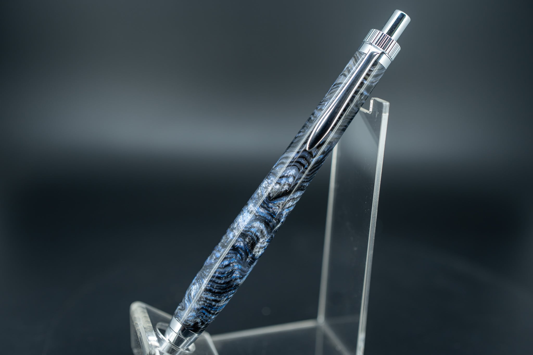ブルーグレーのベースに黒い縞が煌めく、クールな一本。