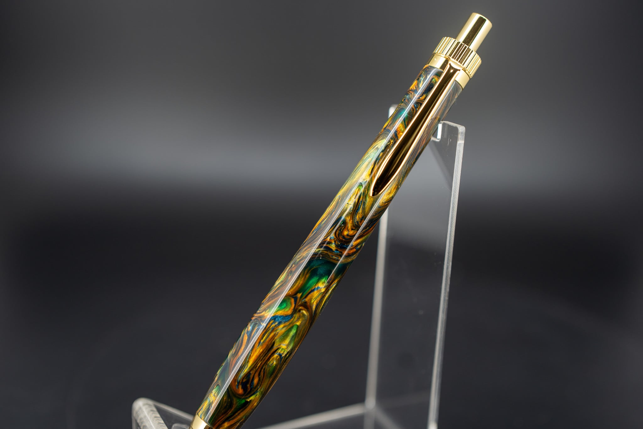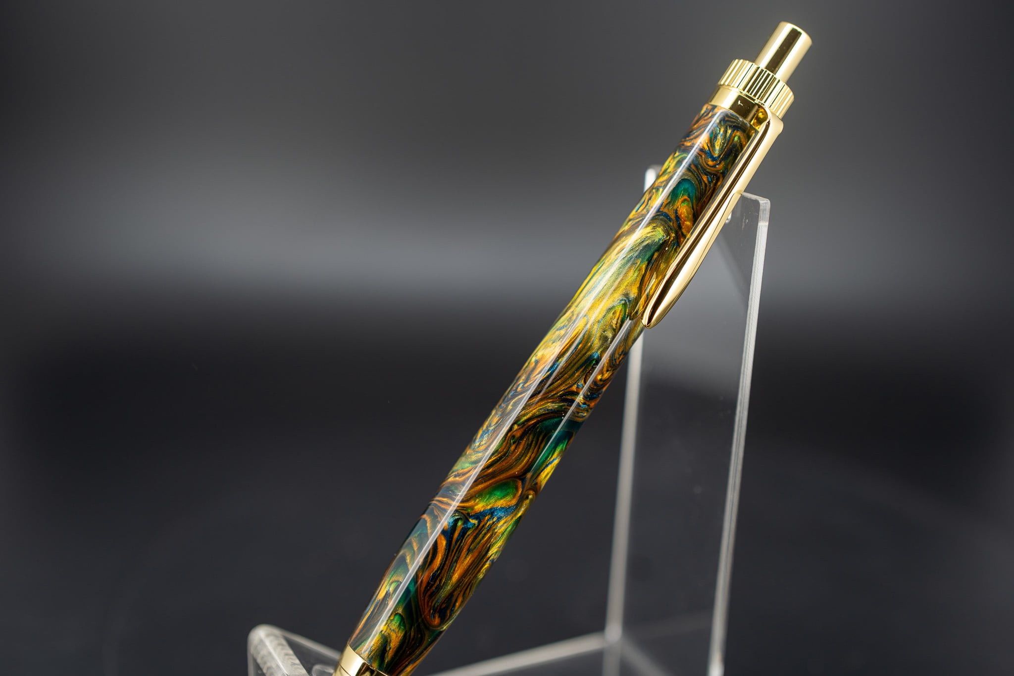 グリーンとゴールドが複雑に混ざり合う、ゴージャスな一本。