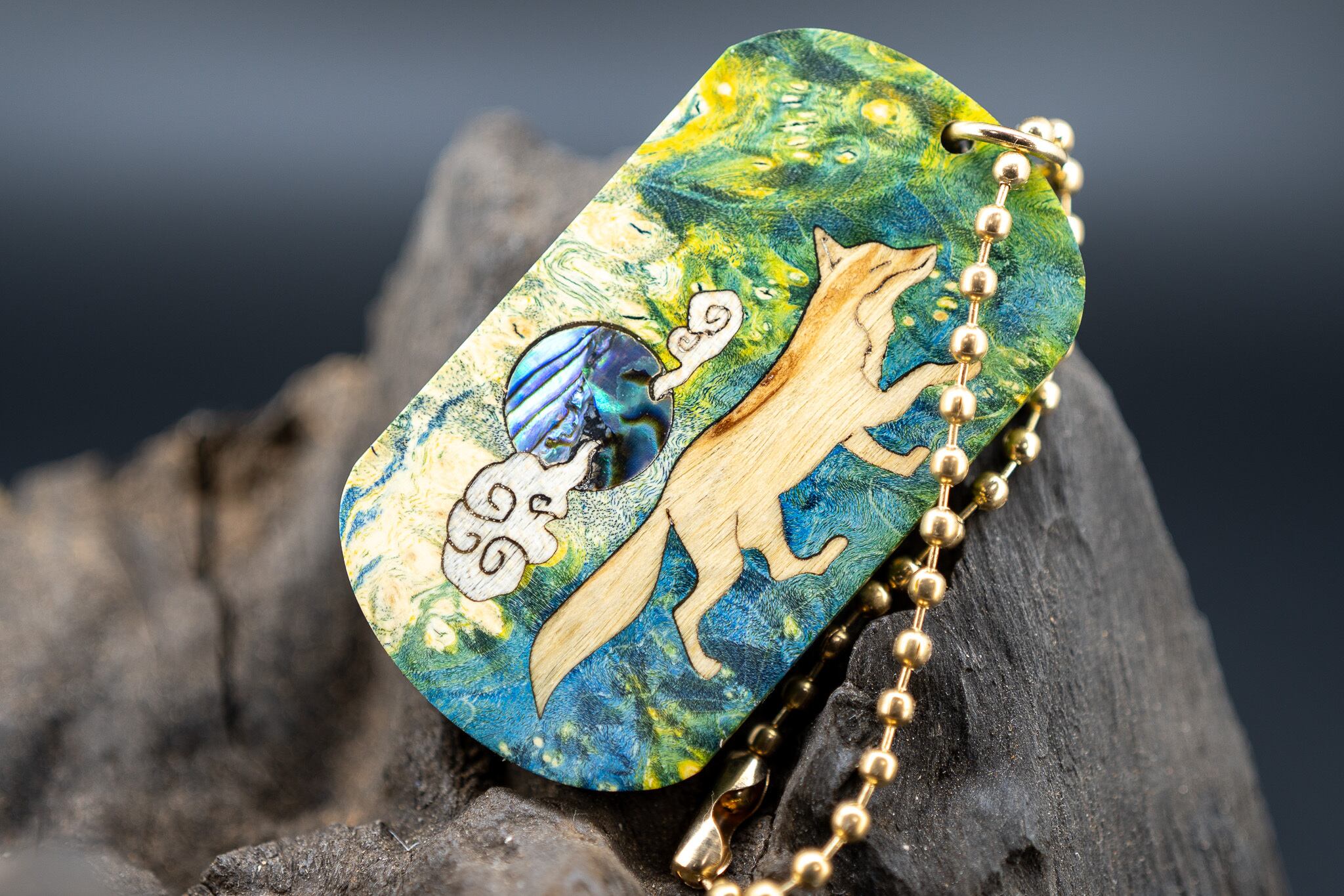 【カナダの象徴】ハードメープル スタビライズウッド ドッグタグ 象嵌 十五夜きつね