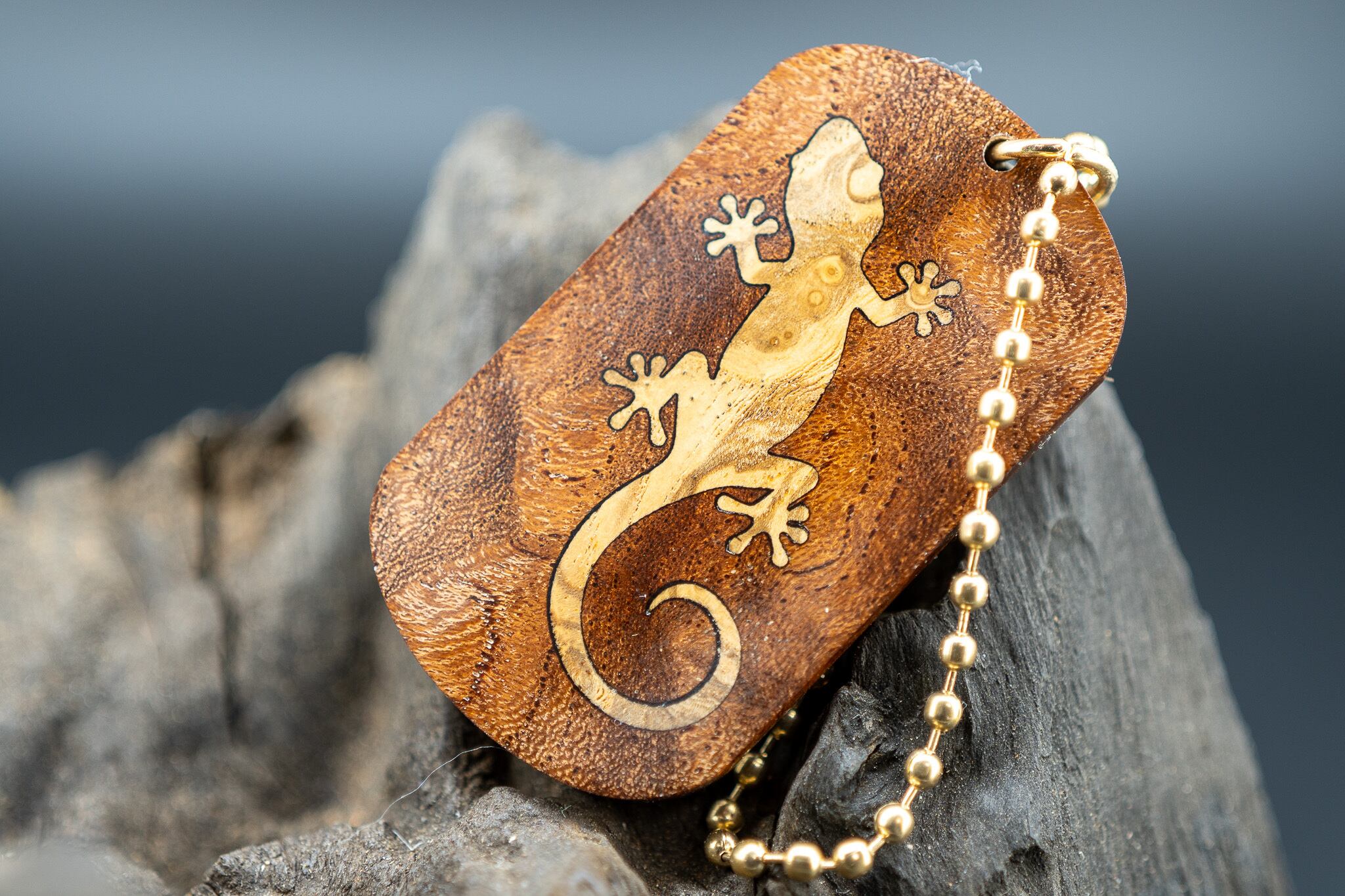 【日本を代表する巨木】 欅(ケヤキ) 変わり杢 ドッグタグ 象嵌 木登りトカゲ