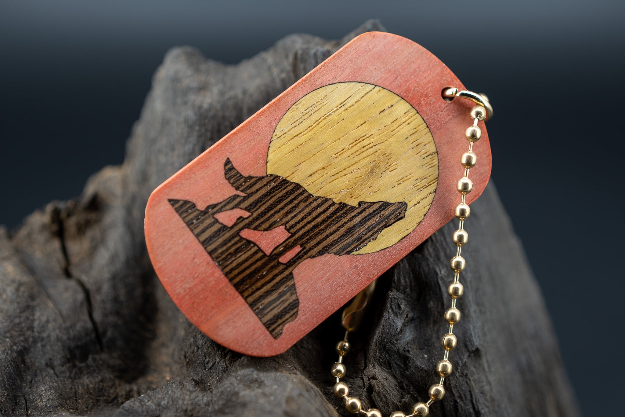 【桃色の象牙肌】ピンクアイボリー ドッグタグ 象嵌 月と狼