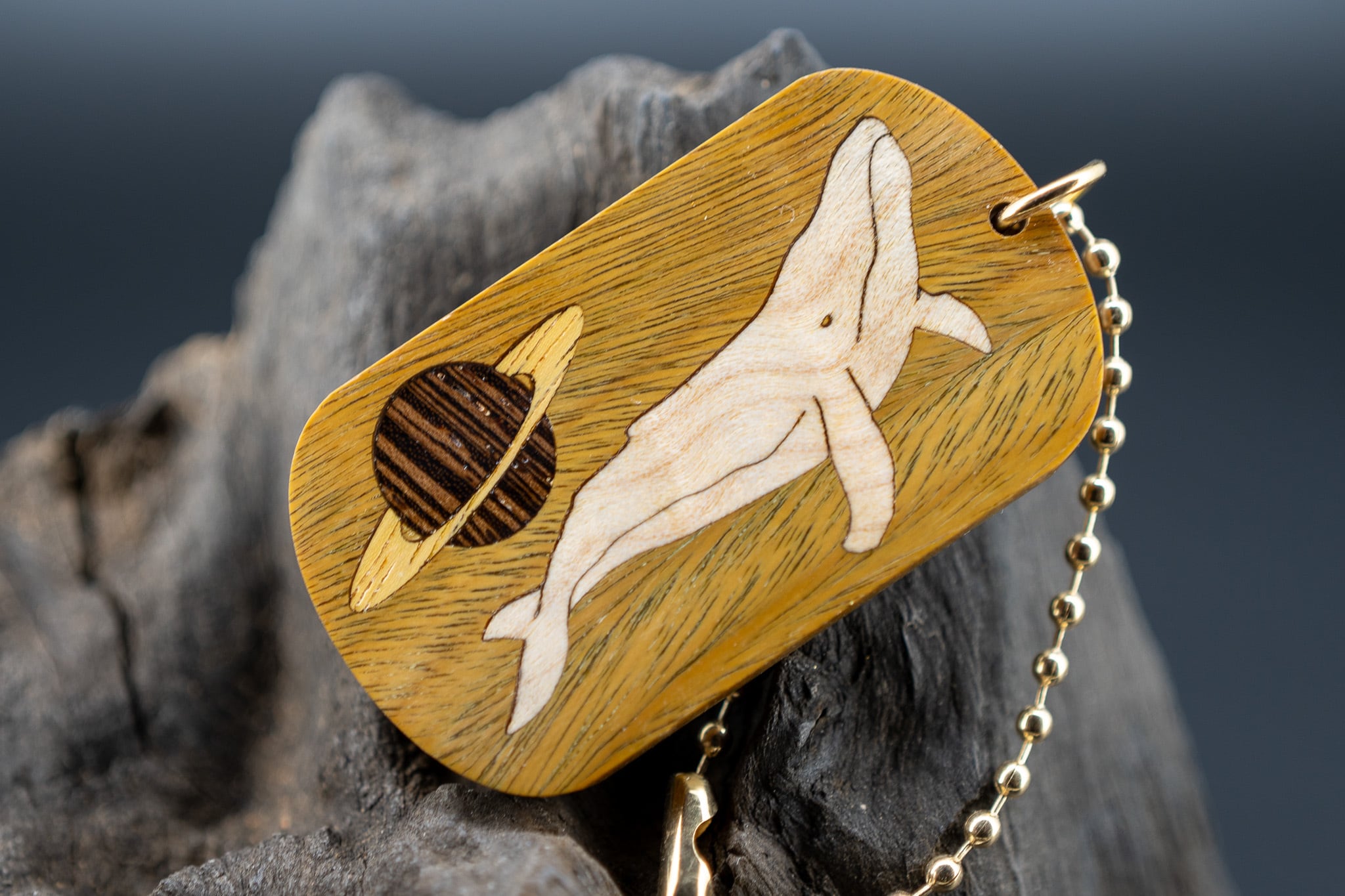 【翡翠の木】パロサント ドッグタグ 象嵌 勇魚と惑星