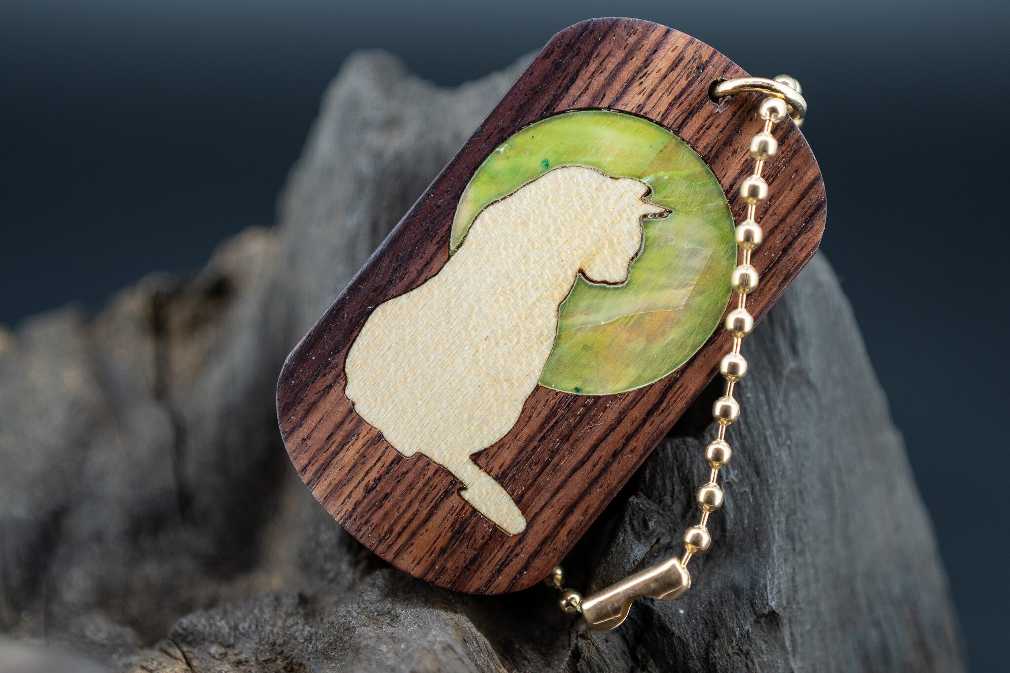 【王室御用達 】 キングウッド ドッグタグ 木象嵌 横を向く上品な猫