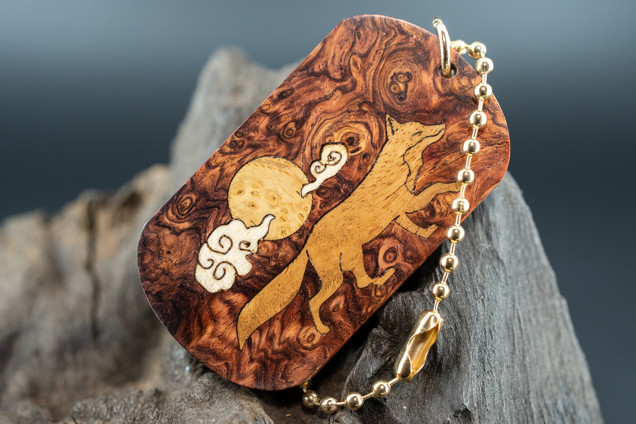 【最高峰の瘤材】ホンジュラスローズウッド 瘤杢 ドッグタグ 象嵌 十五夜きつね