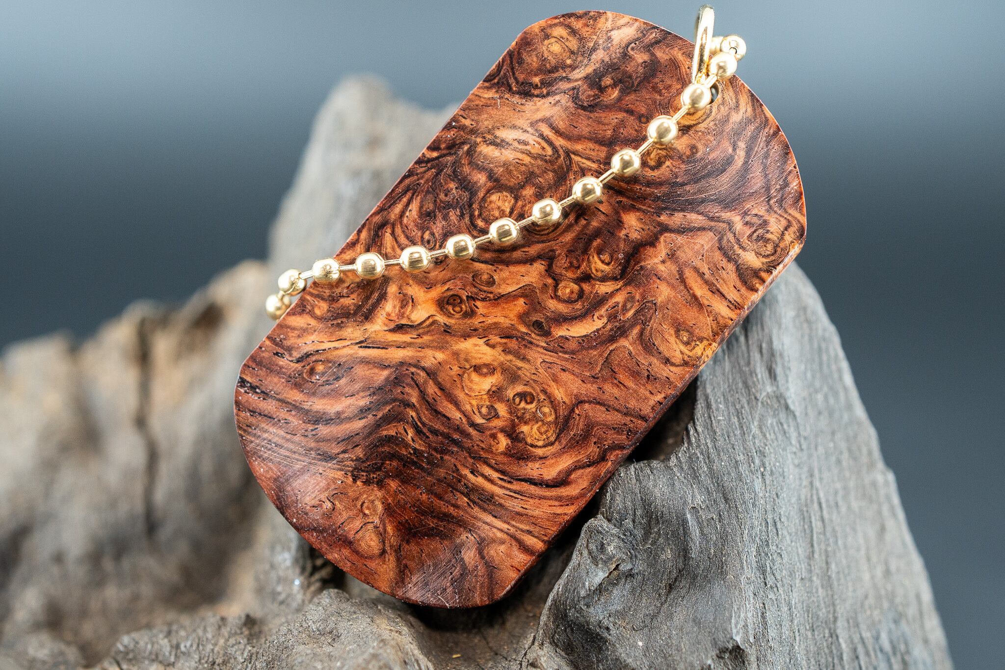 【最高峰の瘤材】ホンジュラスローズウッド 瘤杢 ドッグタグ 象嵌 月と狼