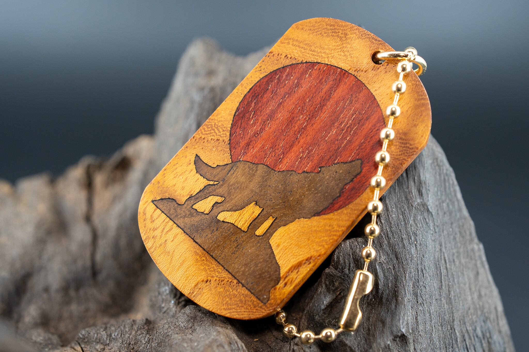 【日本を代表する巨木】 欅(ケヤキ) 変わり杢 ドッグタグ 象嵌 月と狼