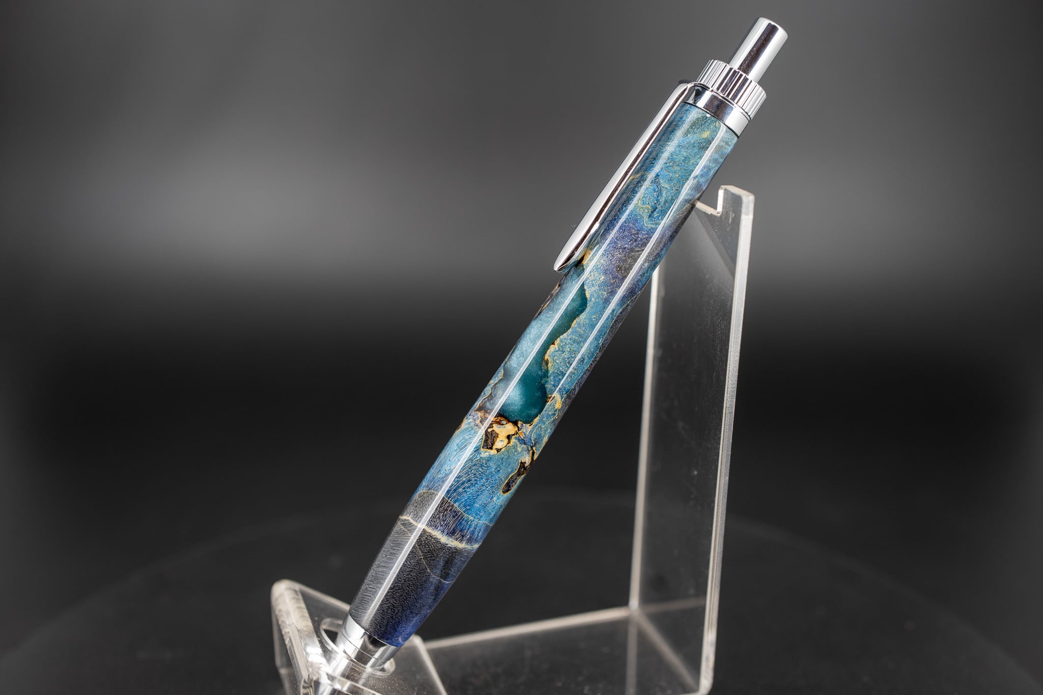こちらは、メープルバールに青紫の樹脂で染色し、さらにレジンを流し込んだた一本。