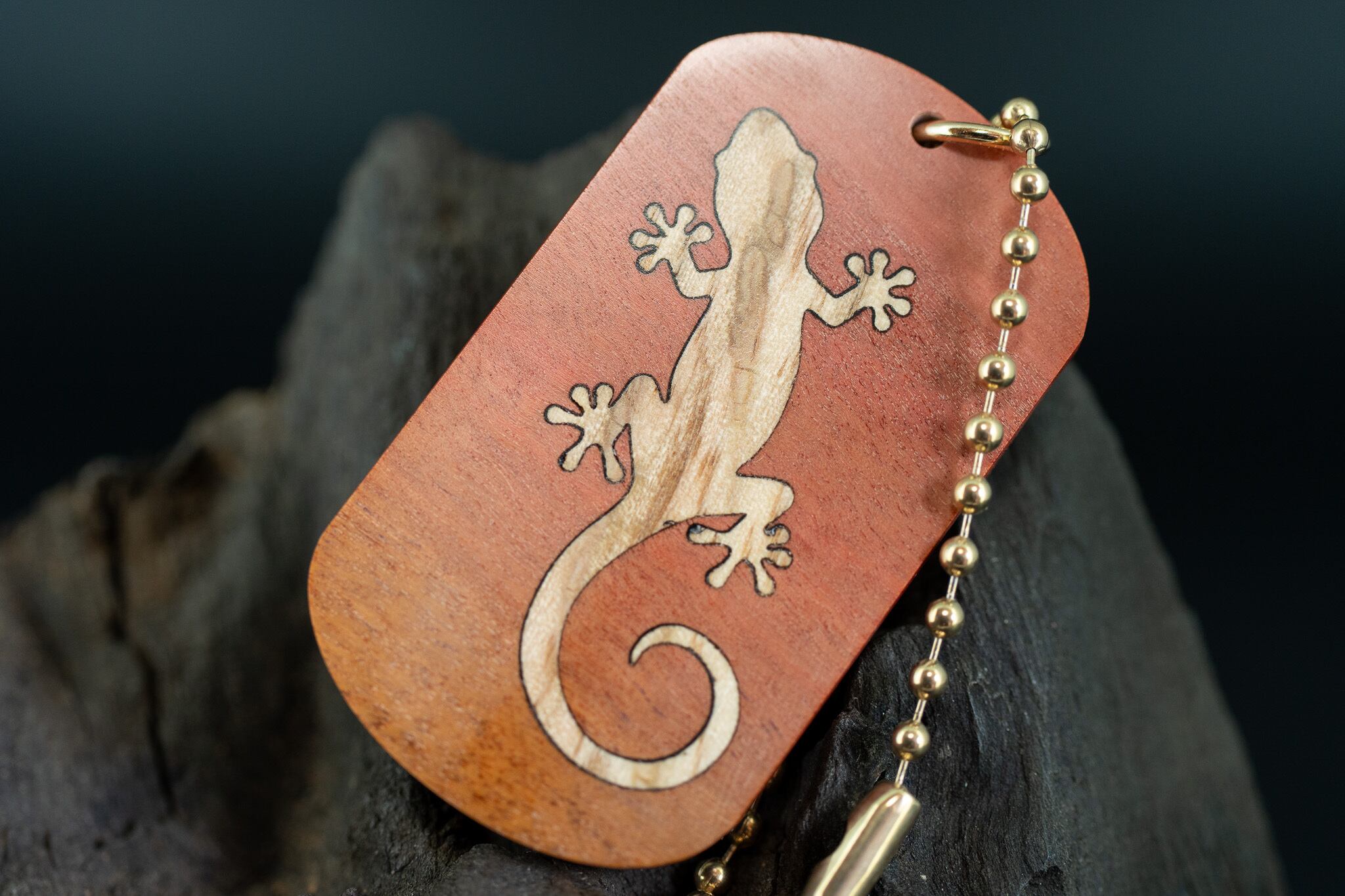 【桃色の象牙肌】ピンクアイボリー ドッグタグ 象嵌 木登りトカゲ