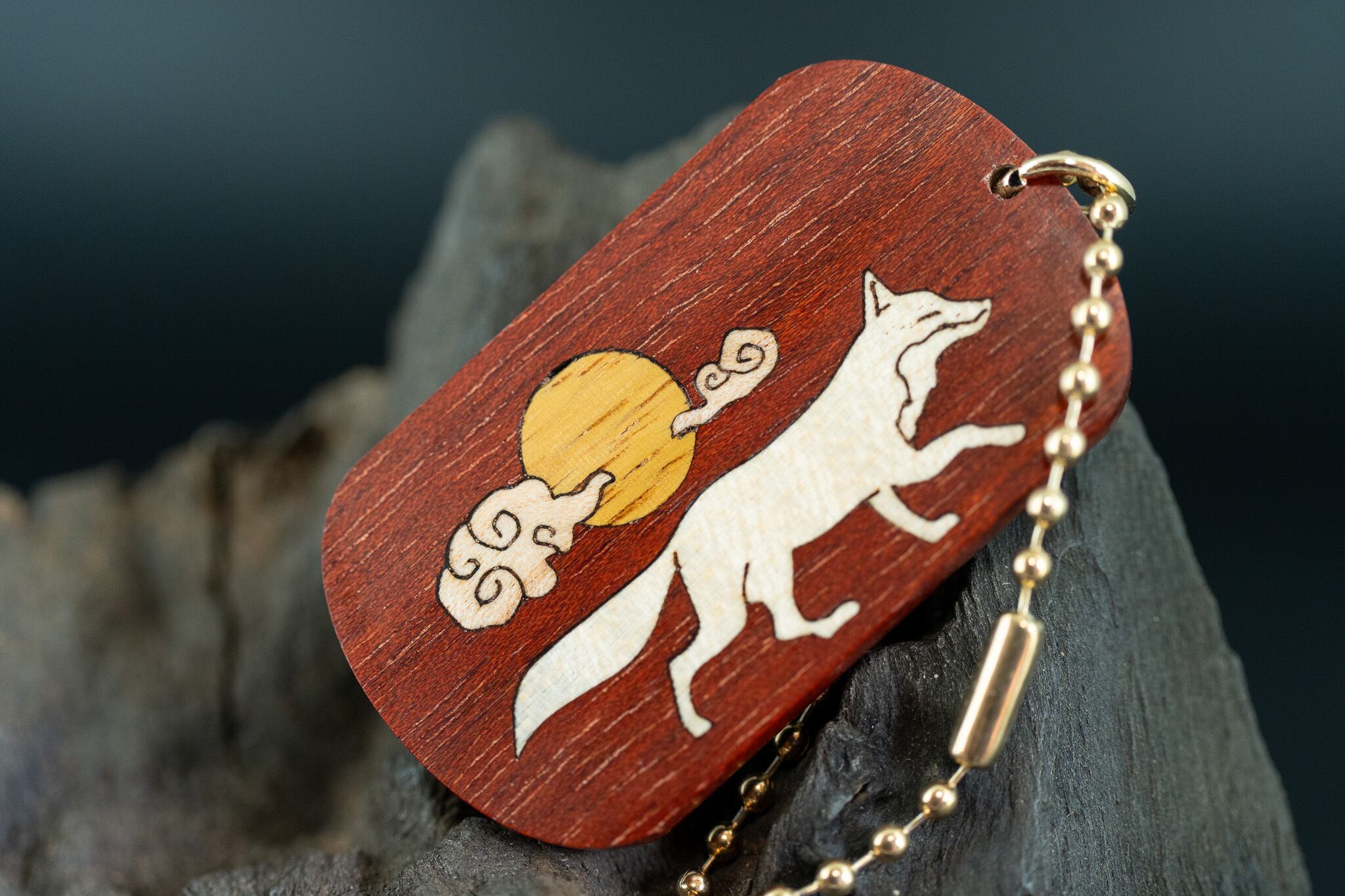 【ブラッドウッド】 サティーネ ドッグタグ 象嵌 十五夜きつね