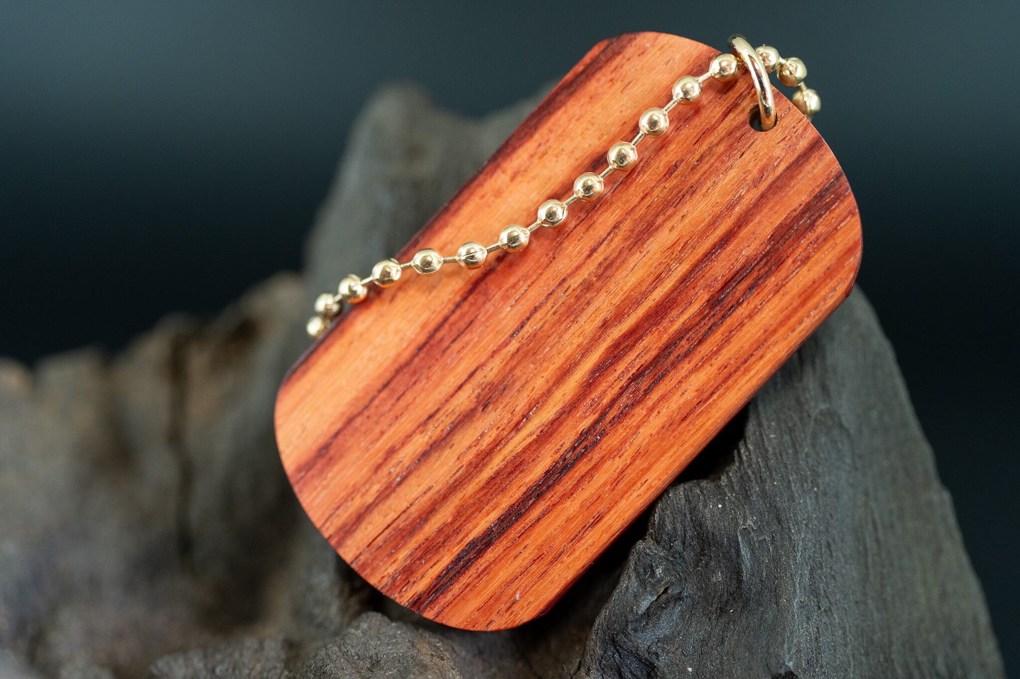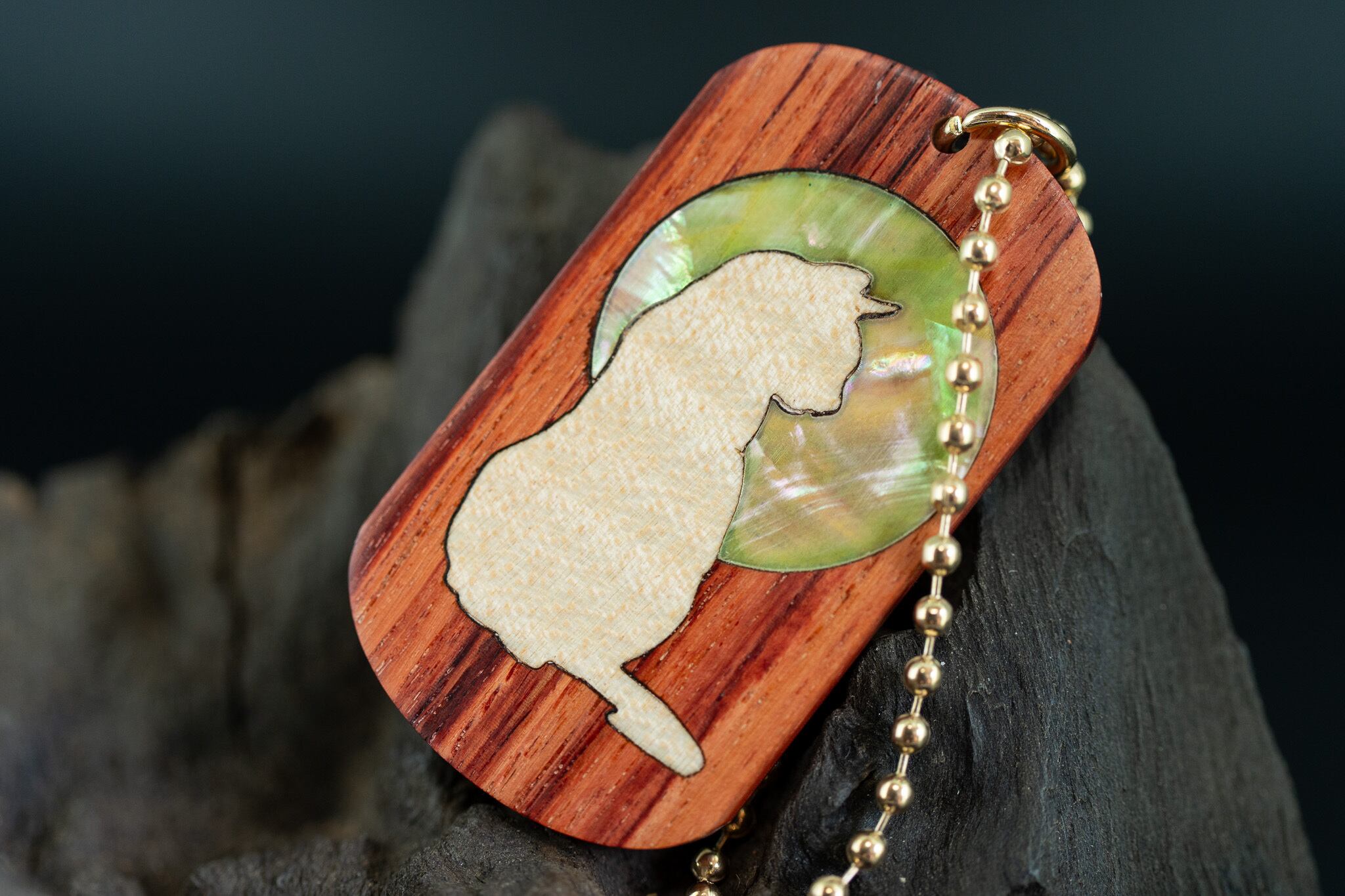 【 木材の女王】 チューリップウッド ドッグタグ 象嵌 横を向く上品な猫