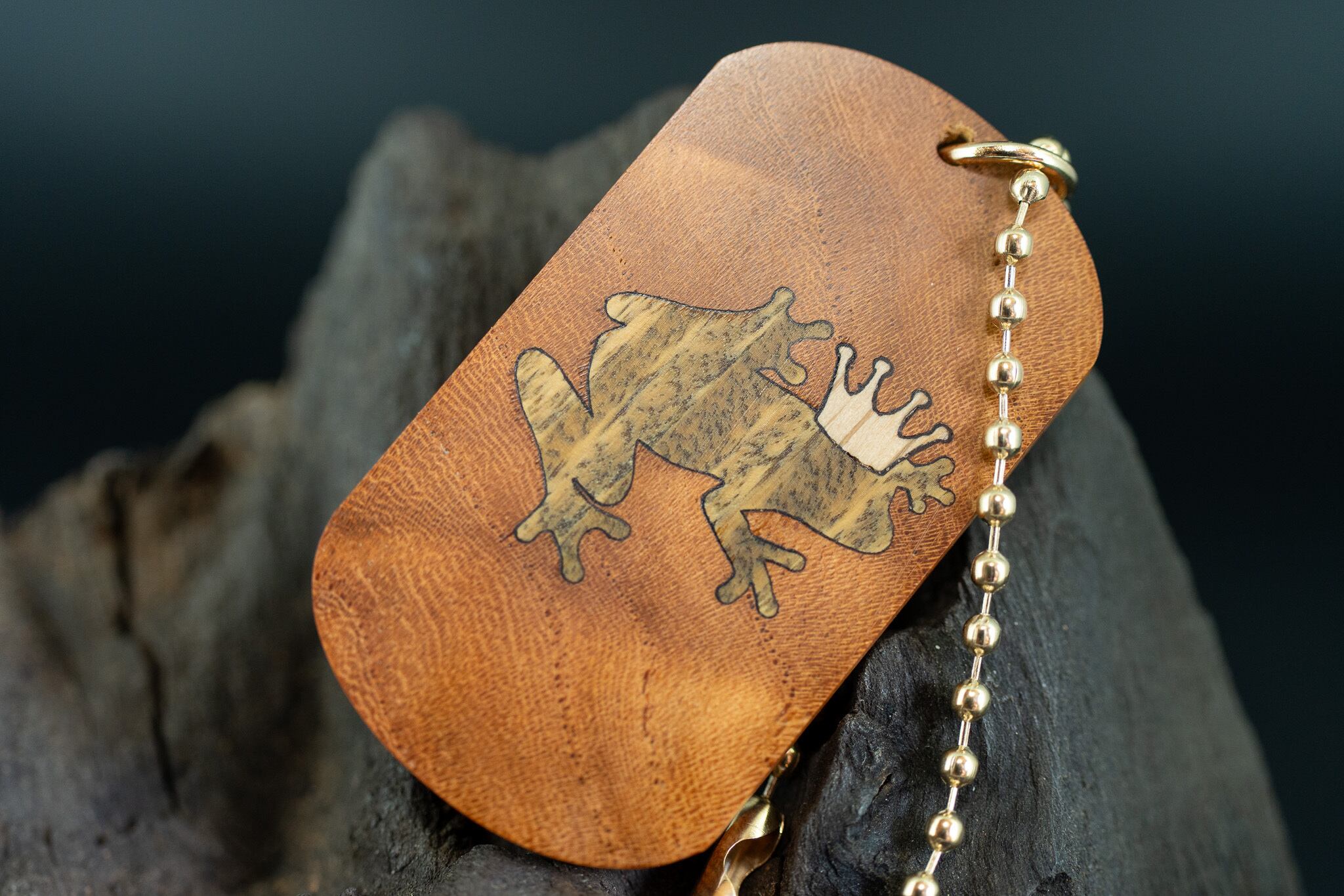 【日本を代表する巨木】 欅(ケヤキ) 変わり杢 ドッグタグ 象嵌 カエルの王様