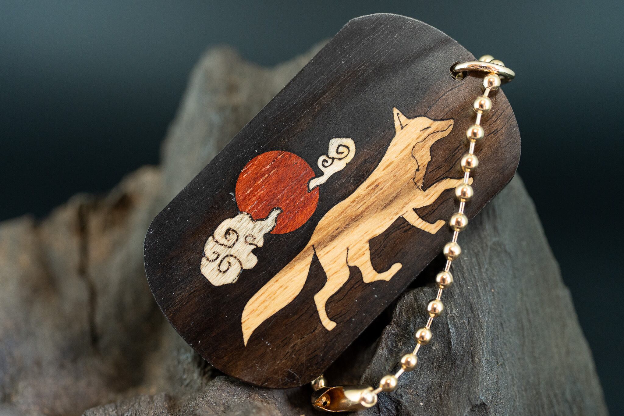 【魅惑の黒い紋様】 黒柿 ドッグタグ 象嵌 十五夜きつね