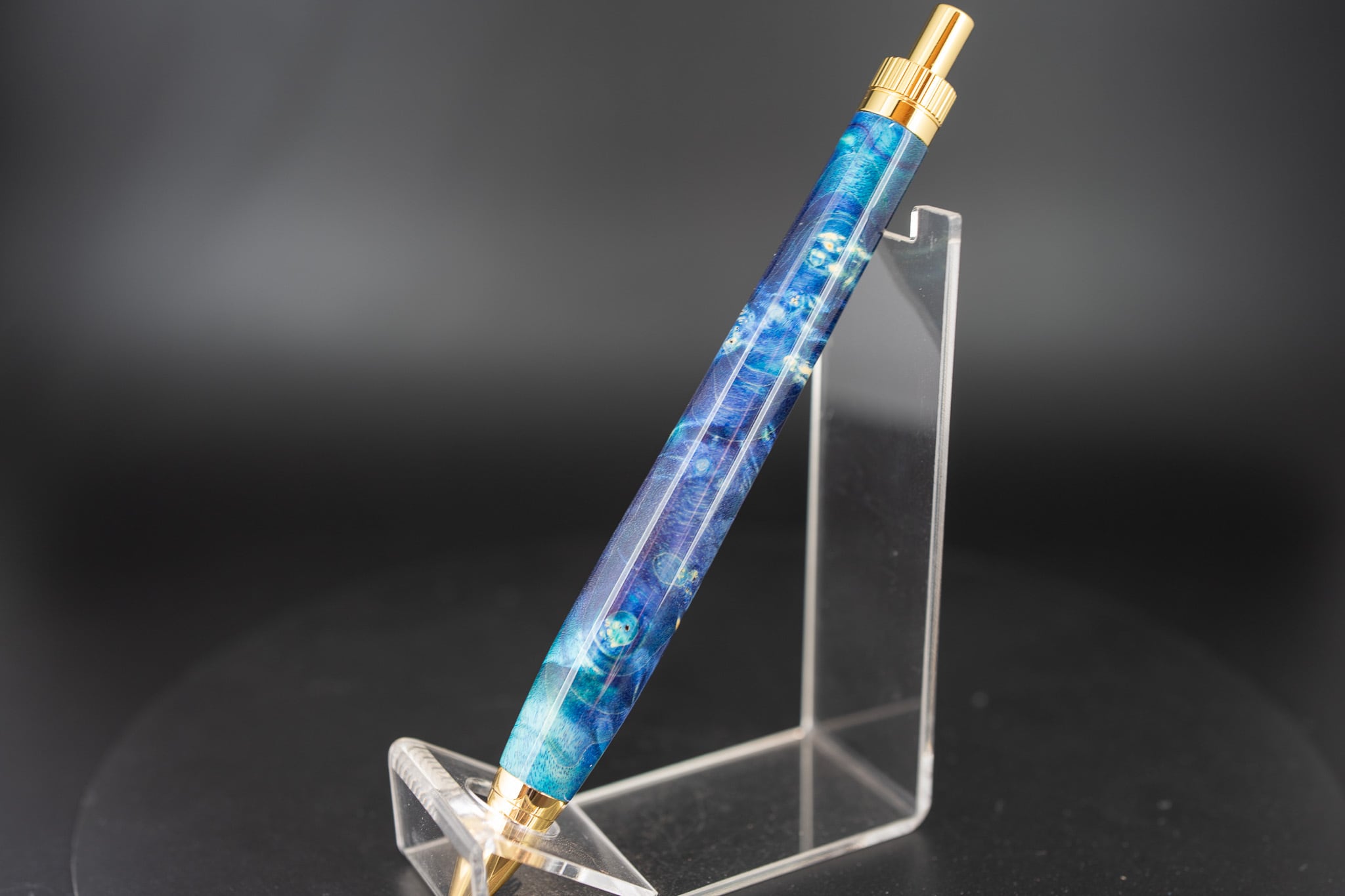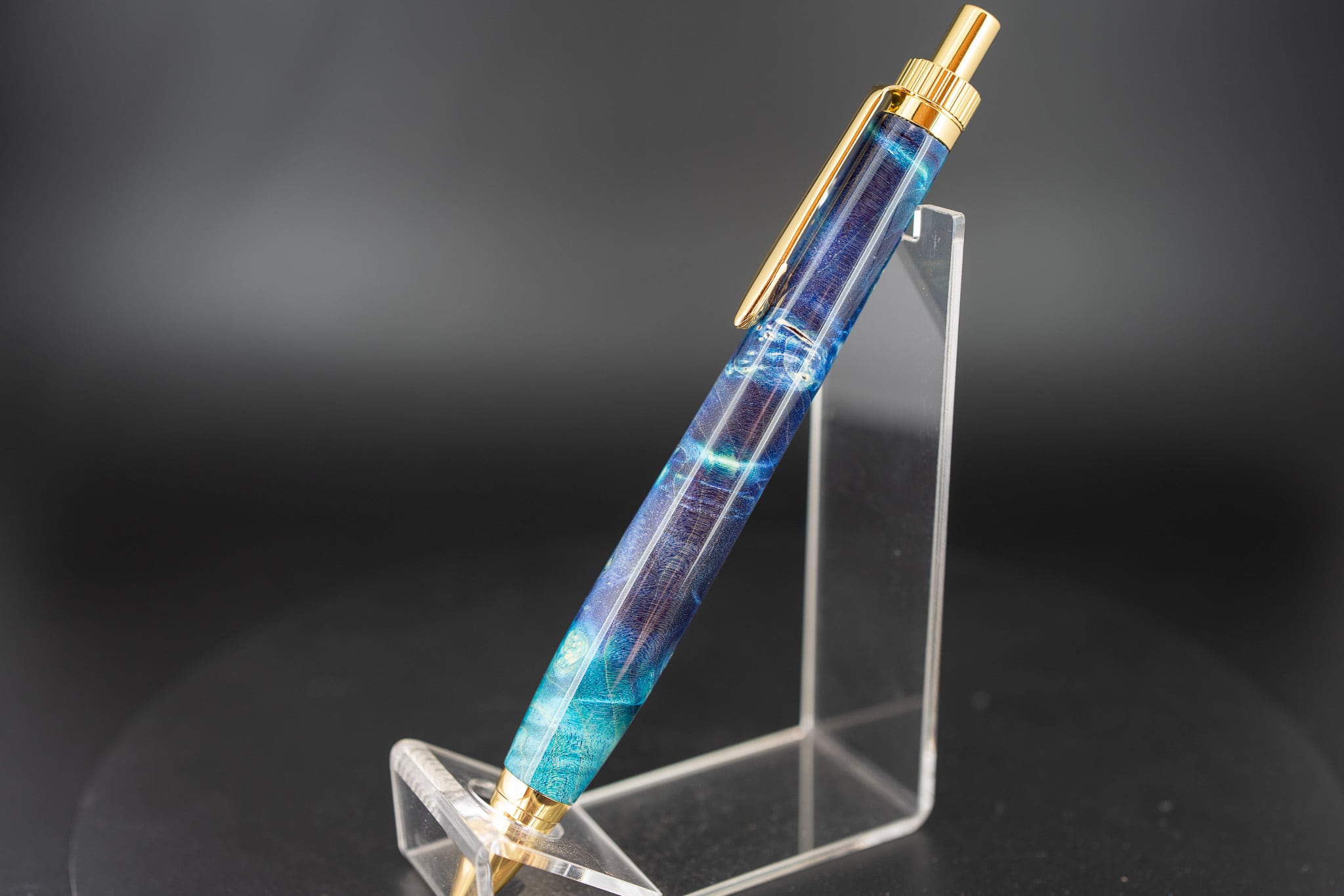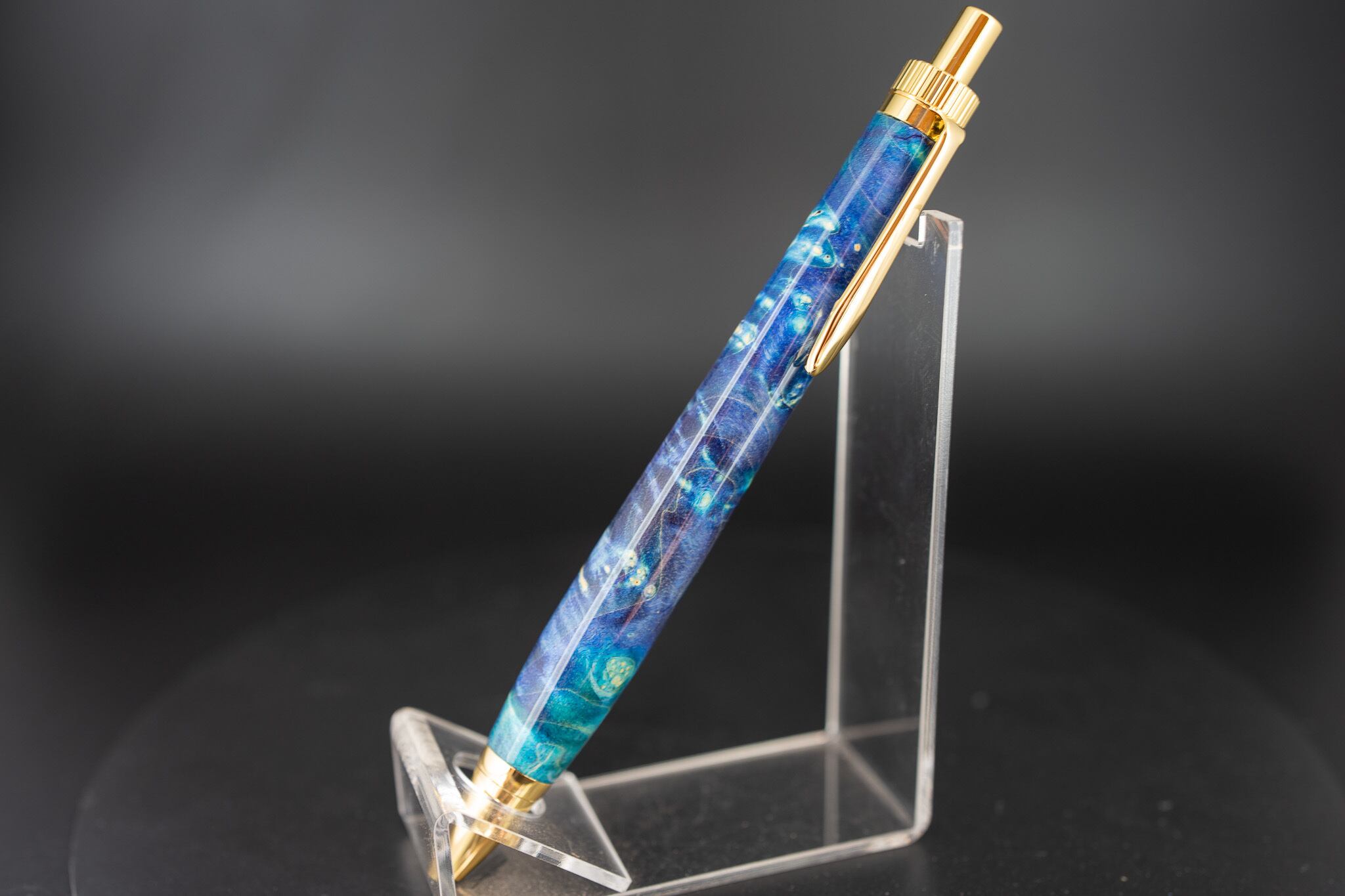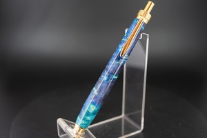 こちらは、メープルバールに青色の樹脂で染色した一本。