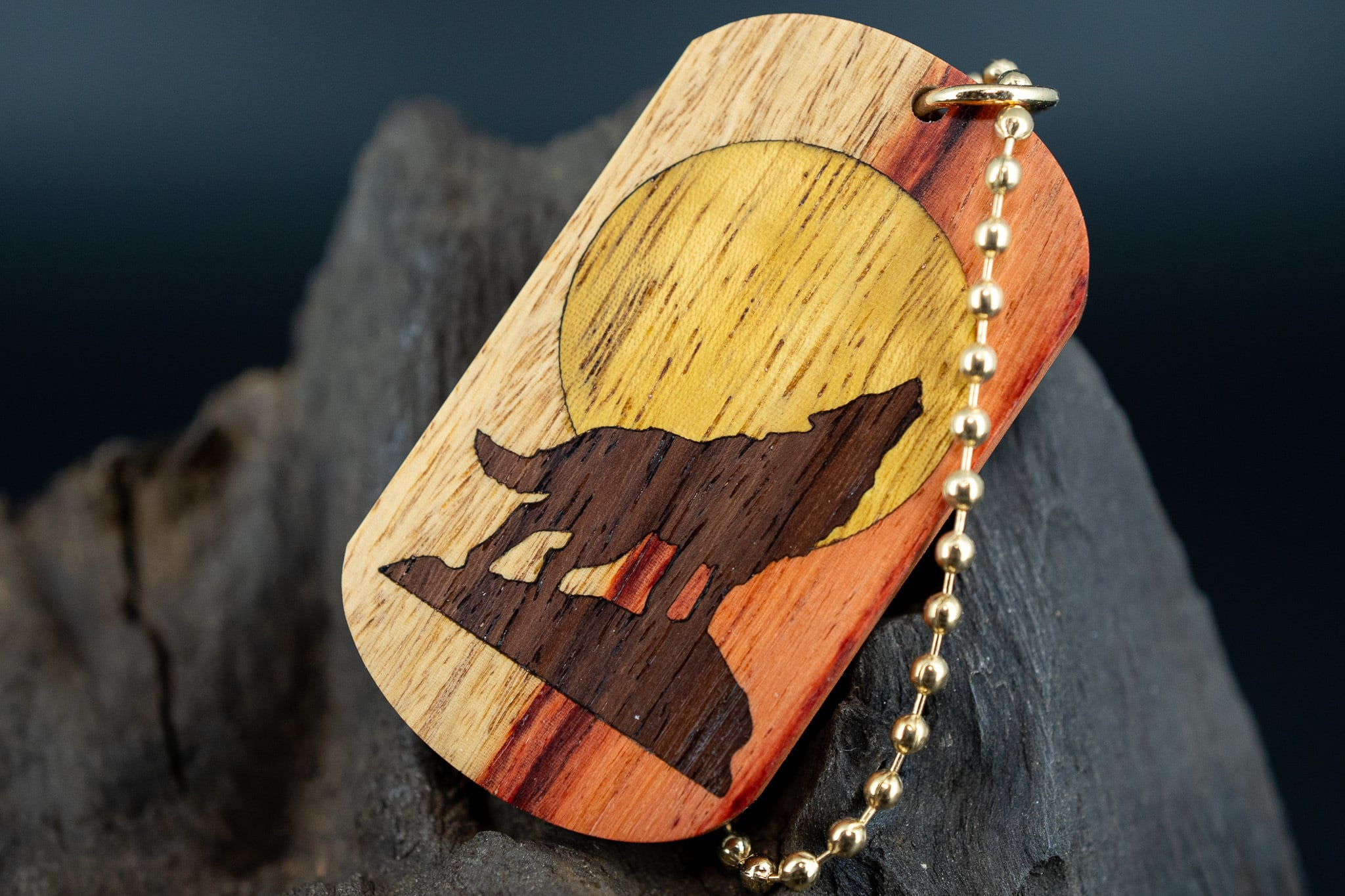 【 木材の女王】 チューリップウッド ドッグタグ 象嵌 月と狼