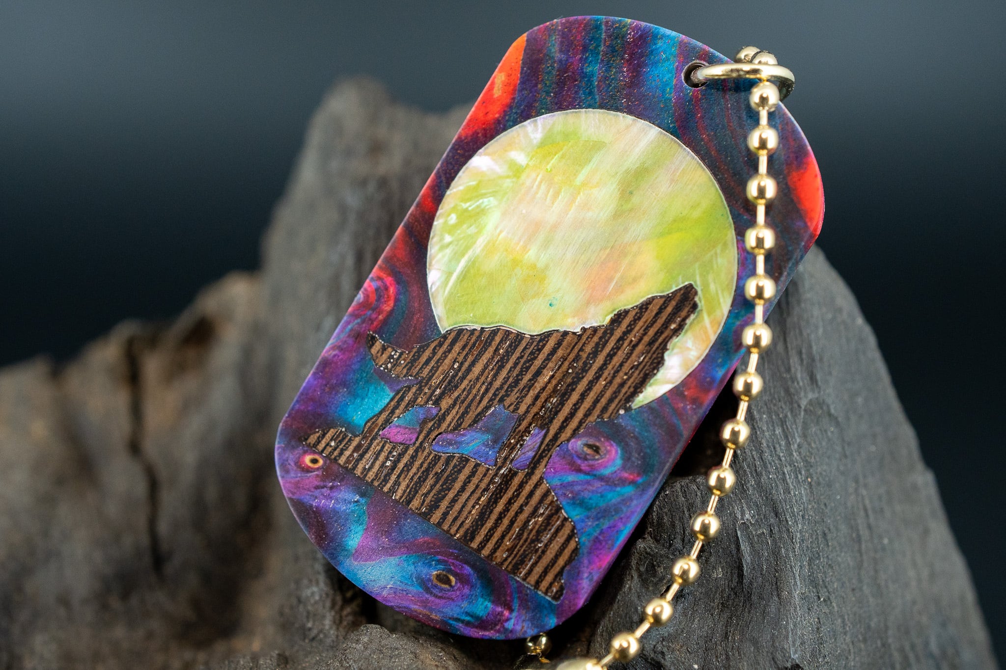 【カナダの象徴】ハードメープル 瘤杢 スタビライズウッド ドッグタグ 象嵌 月と狼