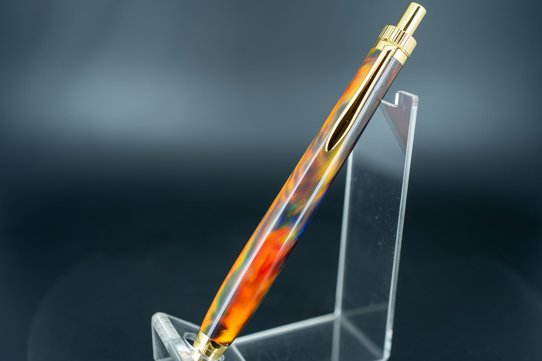 日本が誇る新技術により、樹脂とシリカ粒子(天然オパールの構成成分)から製造されています。ハイブリッドオパールの結晶からペン一本分を贅沢に切り出し、磨き上げました。