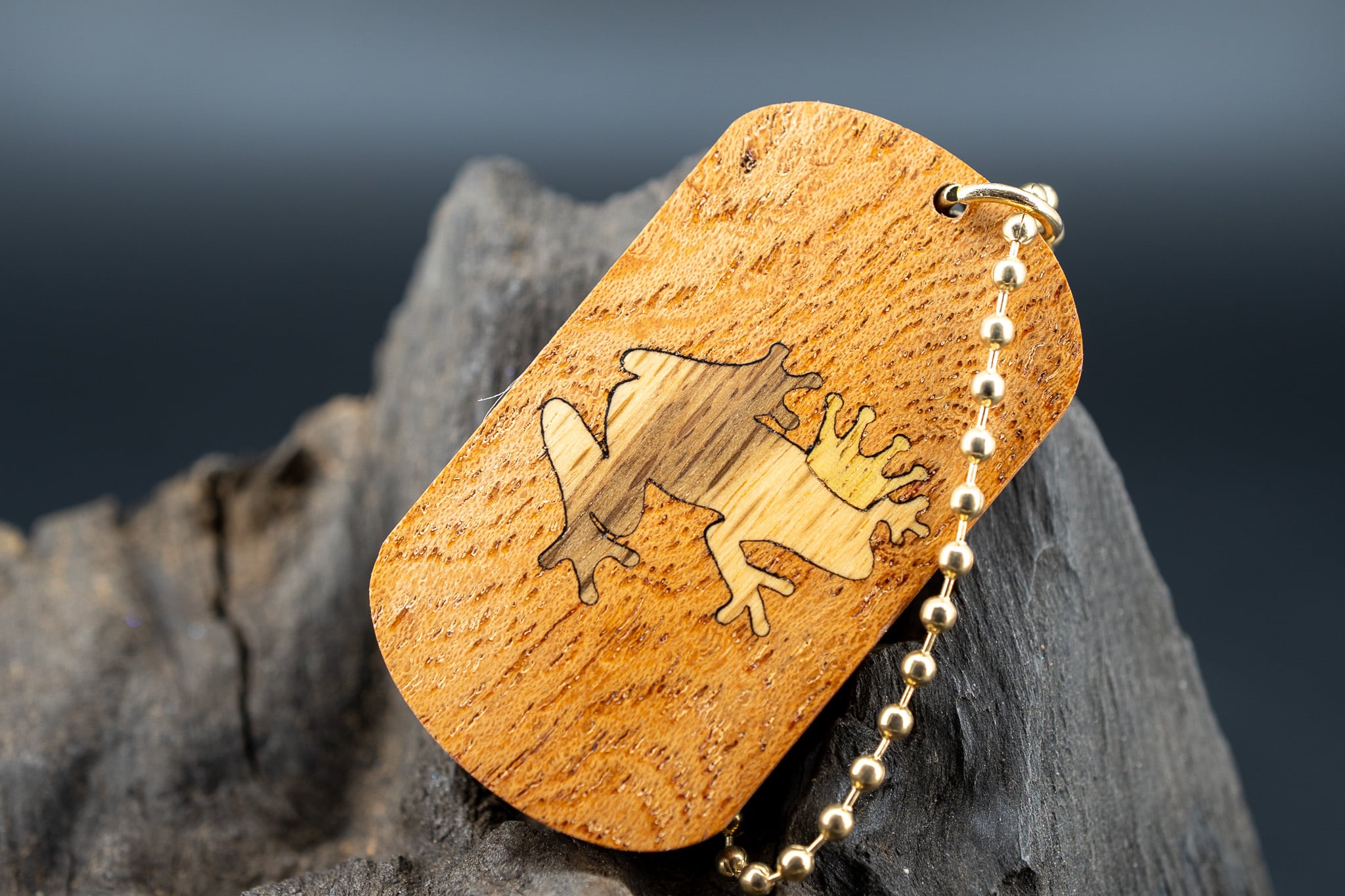 【日本を代表する巨木】 欅(ケヤキ) 変わり杢 ドッグタグ 象嵌 カエルの王様