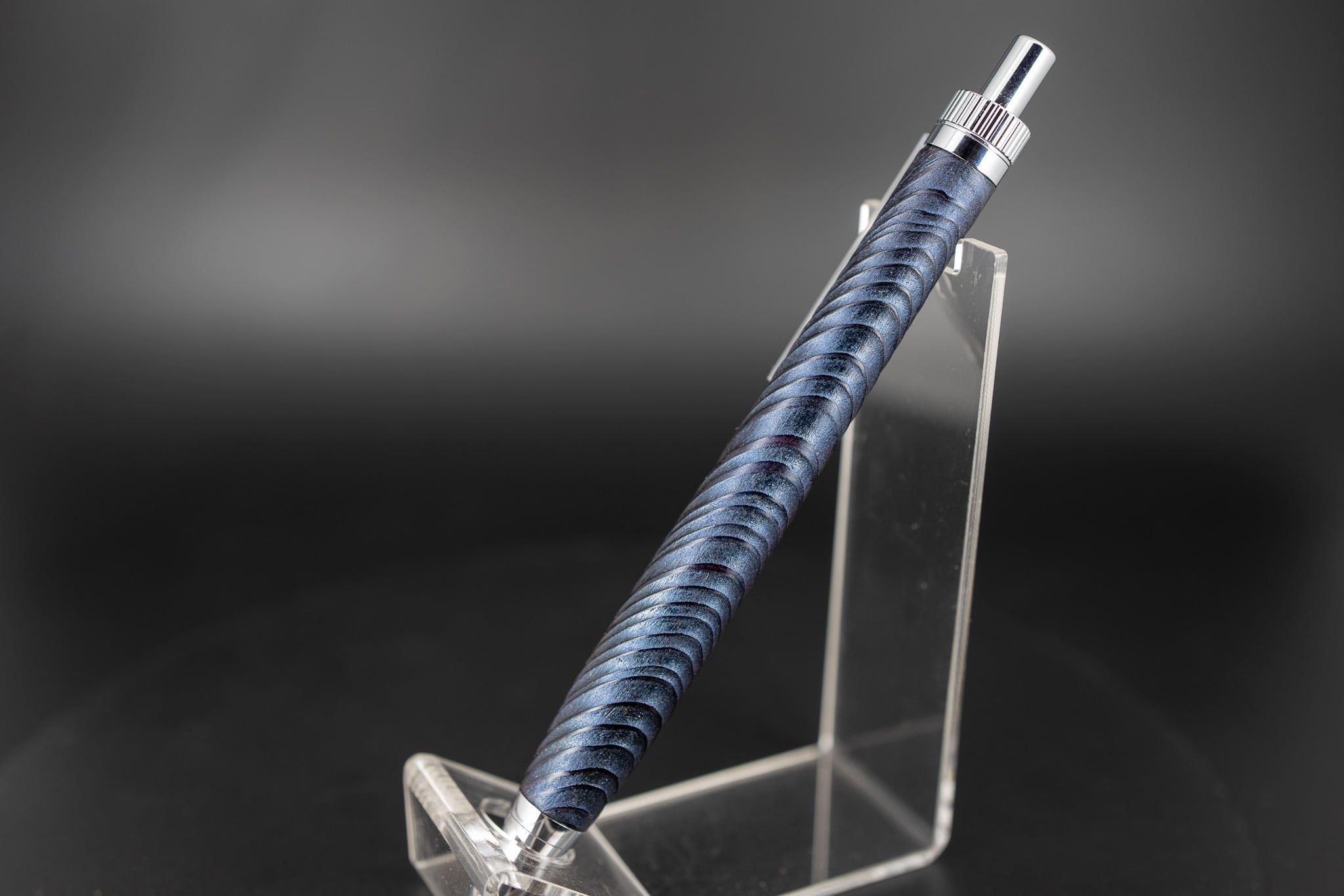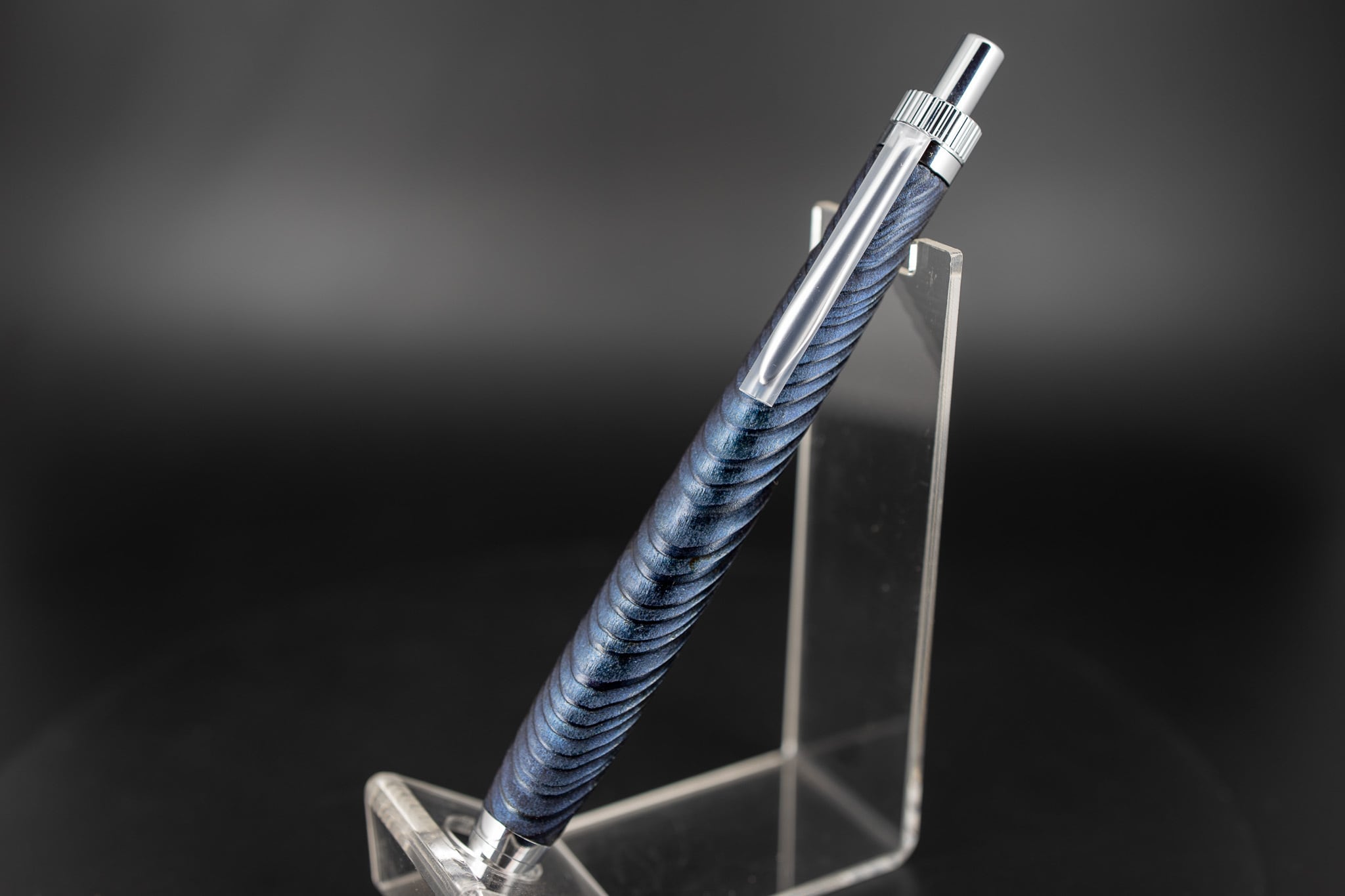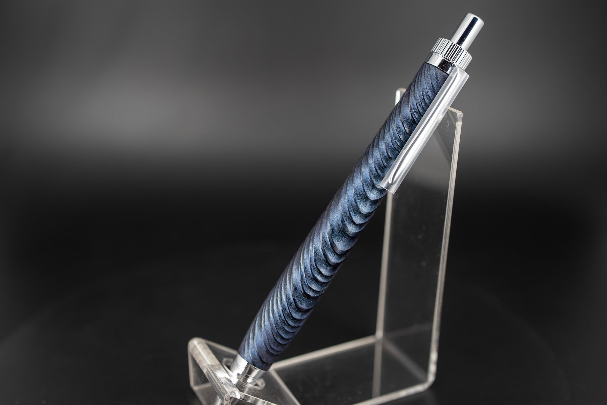 浮造りを施した美しい木目の屋久杉に、国産漆と藍色の顔料を混ぜた漆を丁寧に塗り重ねました。