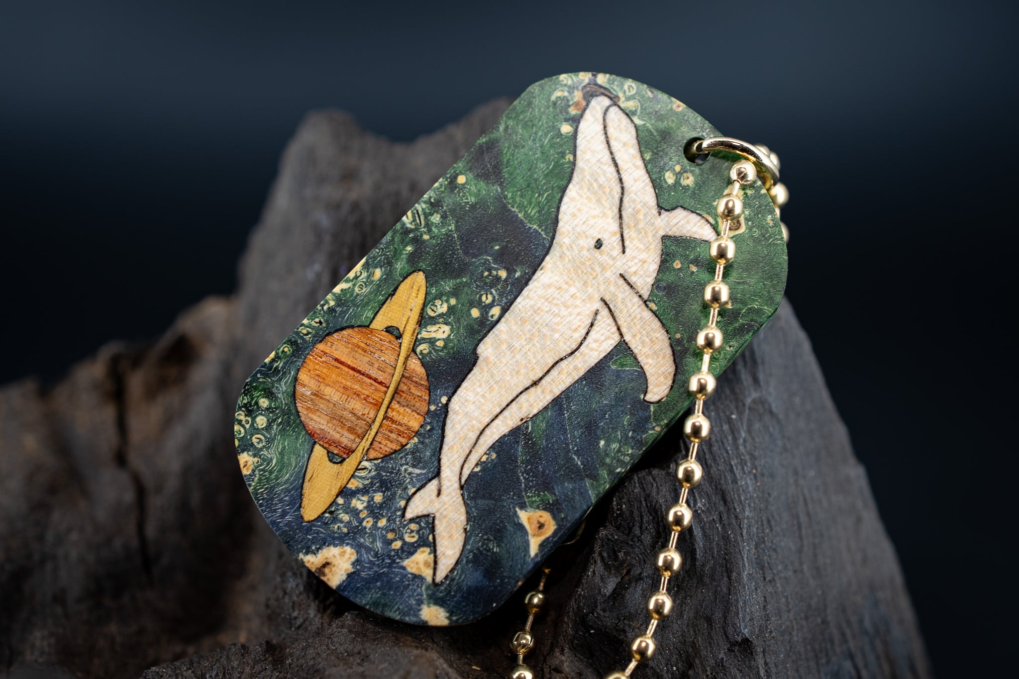 【カナダの象徴】ハードメープル 瘤杢 スタビライズウッド ドッグタグ 木象嵌 勇魚と惑星