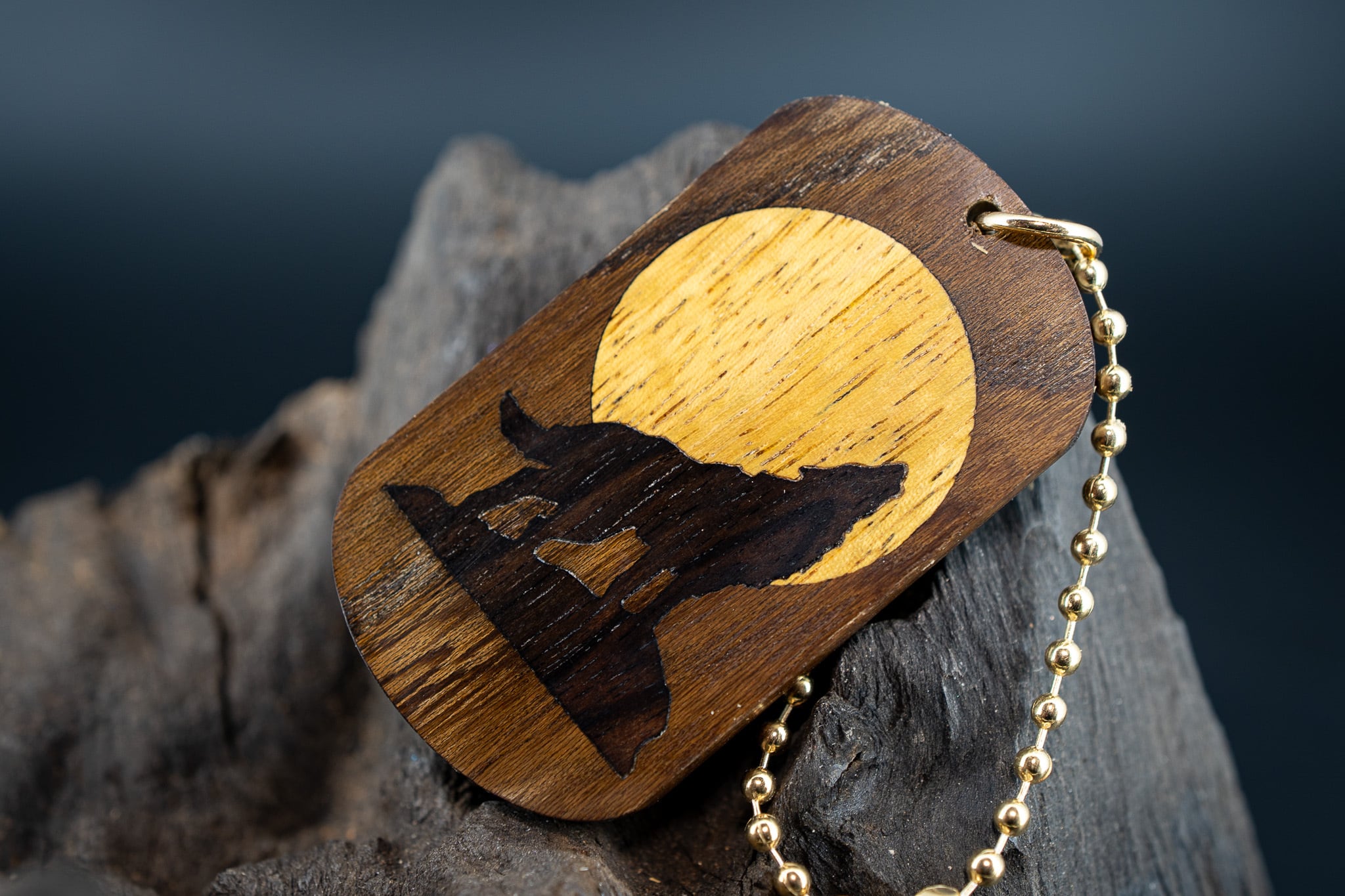 【 日本を代表する巨木 】神代 欅 ドッグタグ 木象嵌 月と狼