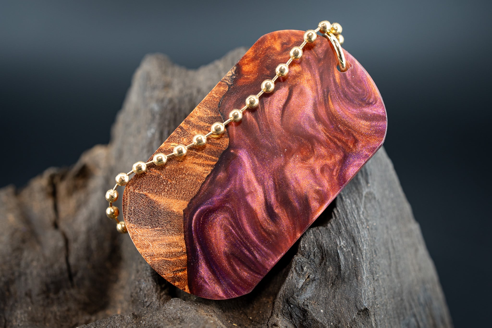 【創造性と透明美】 レジン×ウッド ドッグタグ 象嵌 月と狼
