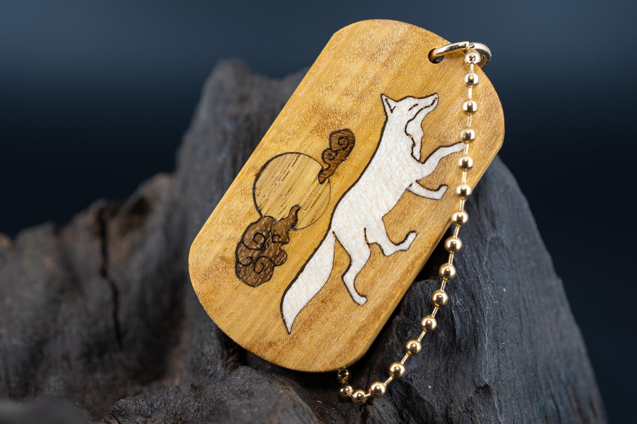 【光の木】 サテンウッド ドッグタグ 象嵌 十五夜きつね