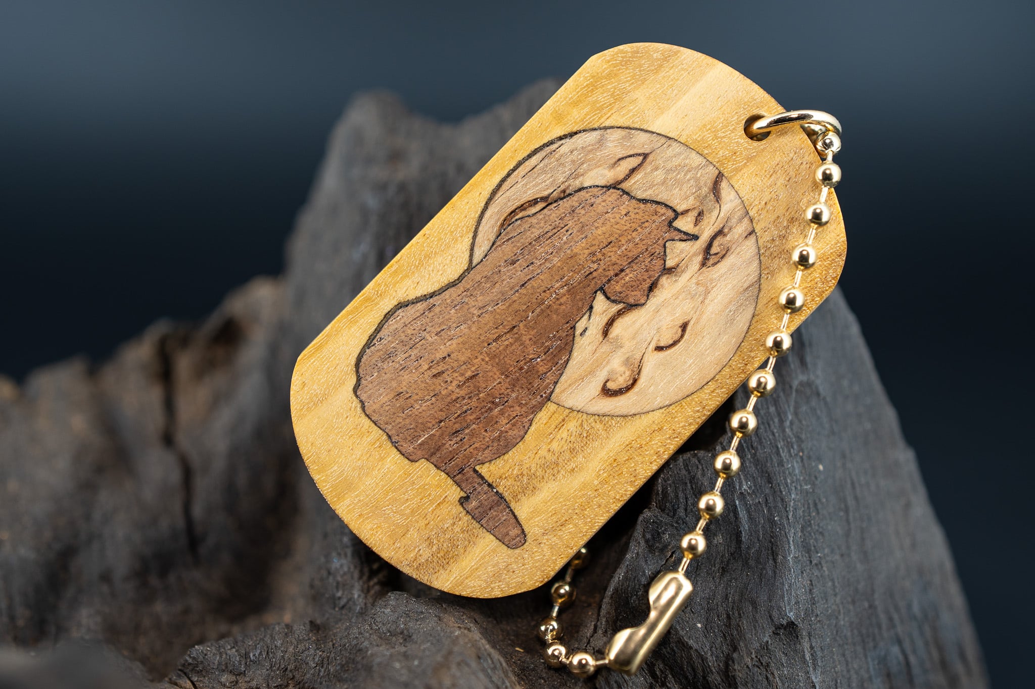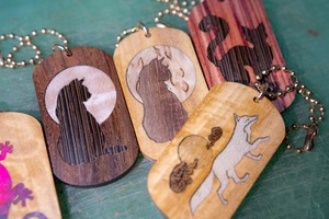【光の木】 サテンウッド ドッグタグ 象嵌 横を向く上品な猫