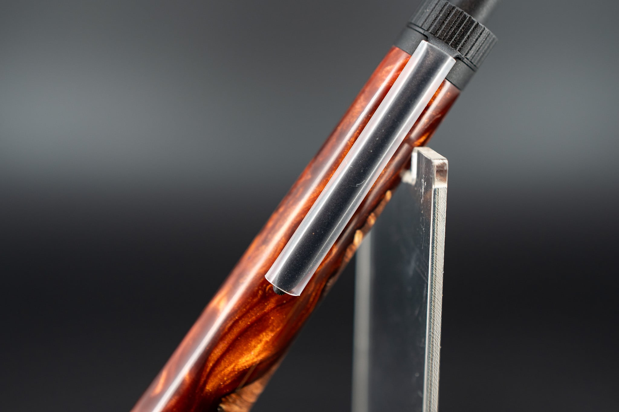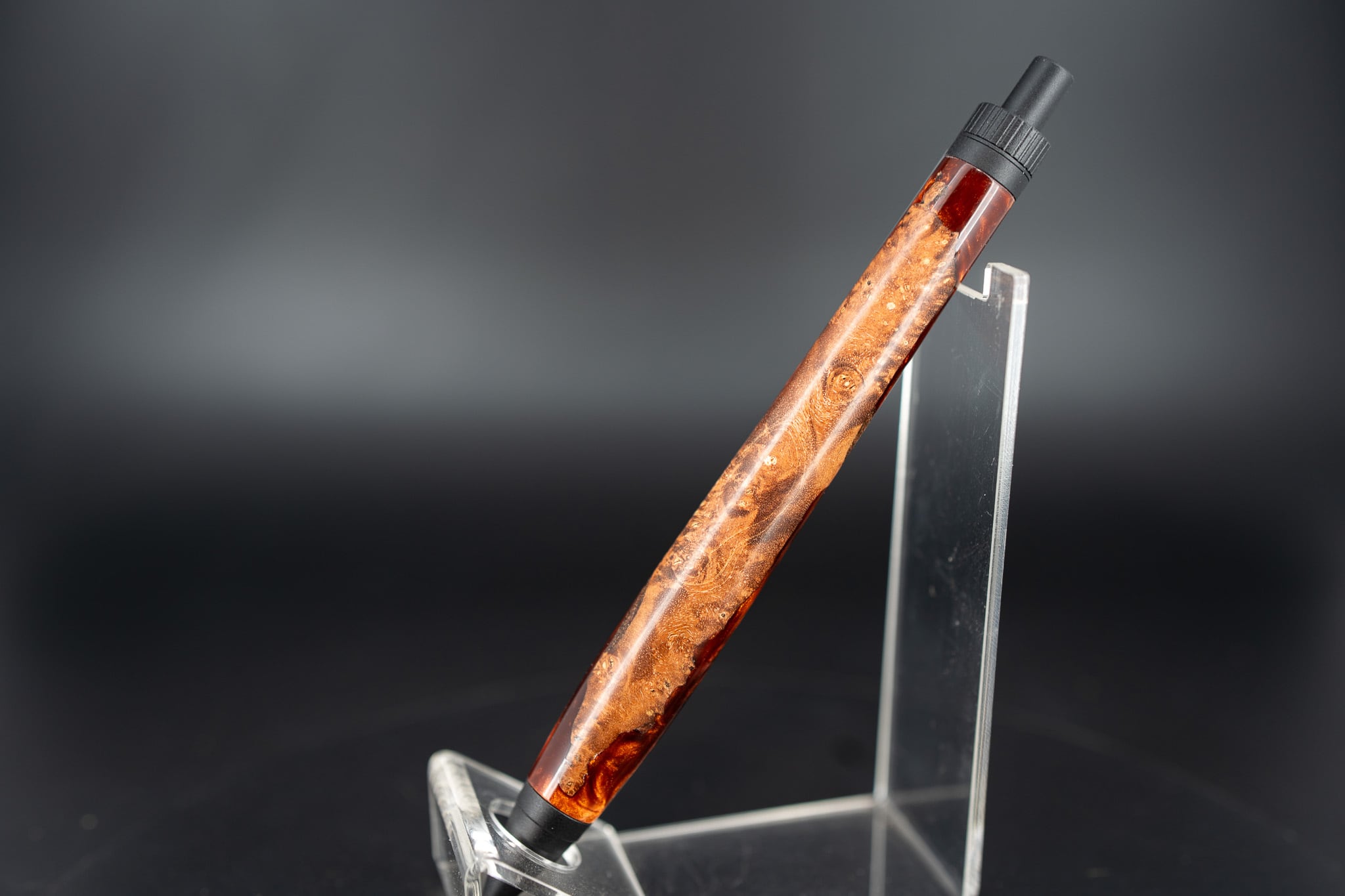 こちらは、メープルバールに樹脂を含侵させ、さらにレジンを流し込んだ材を使用しました。