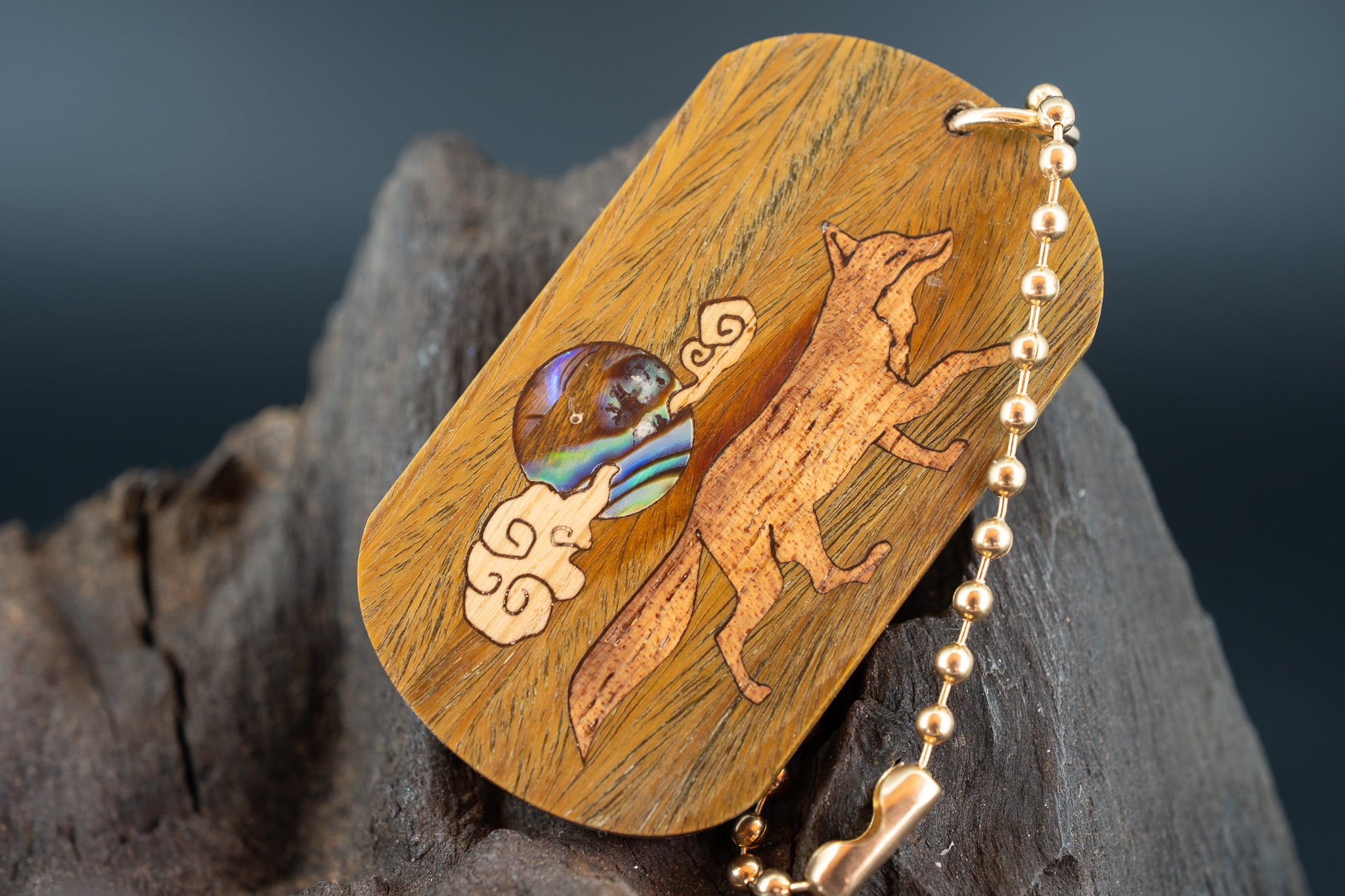 ※【翡翠の木】 パロサント ドッグタグ 象嵌 十五夜きつね