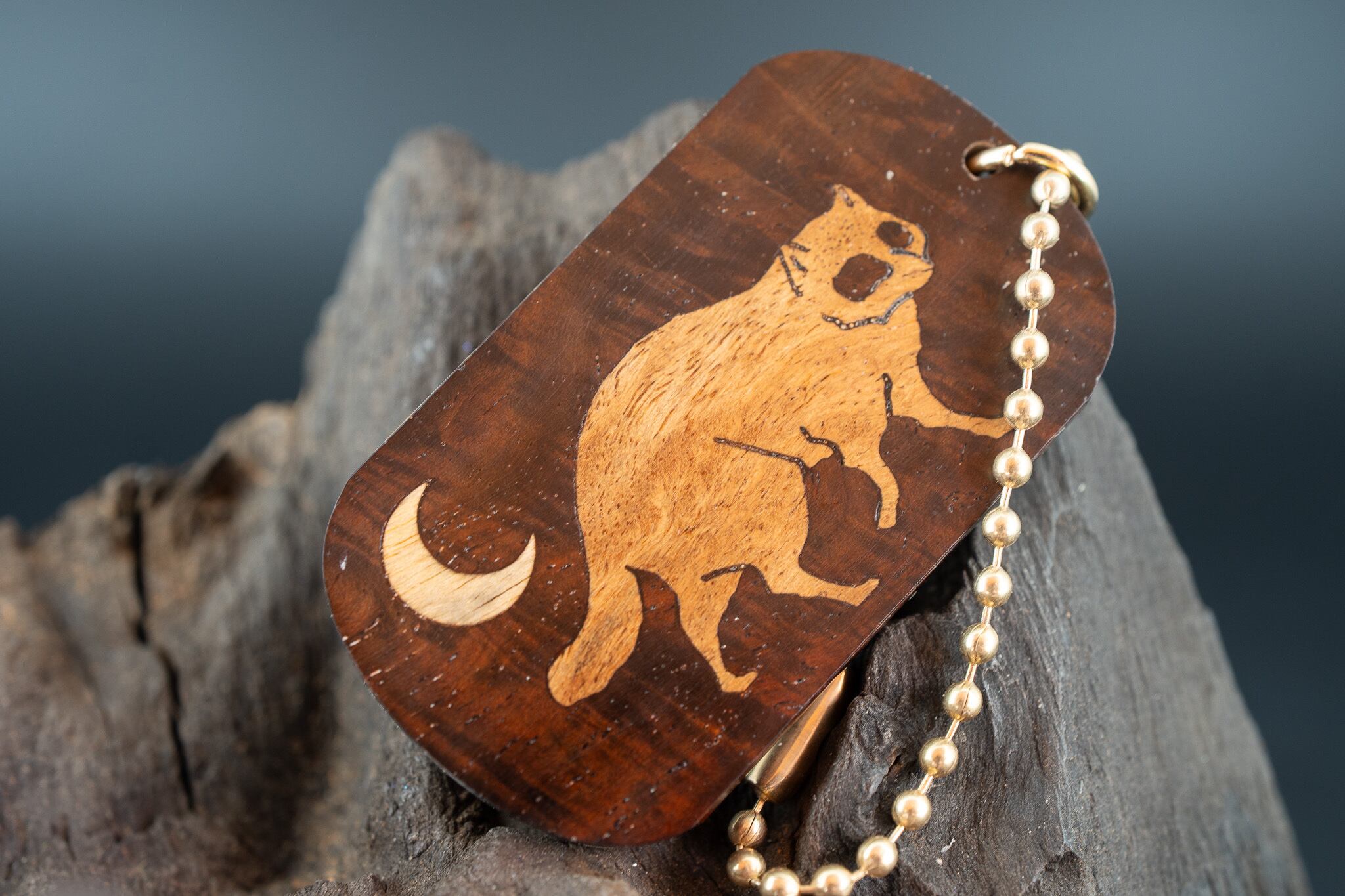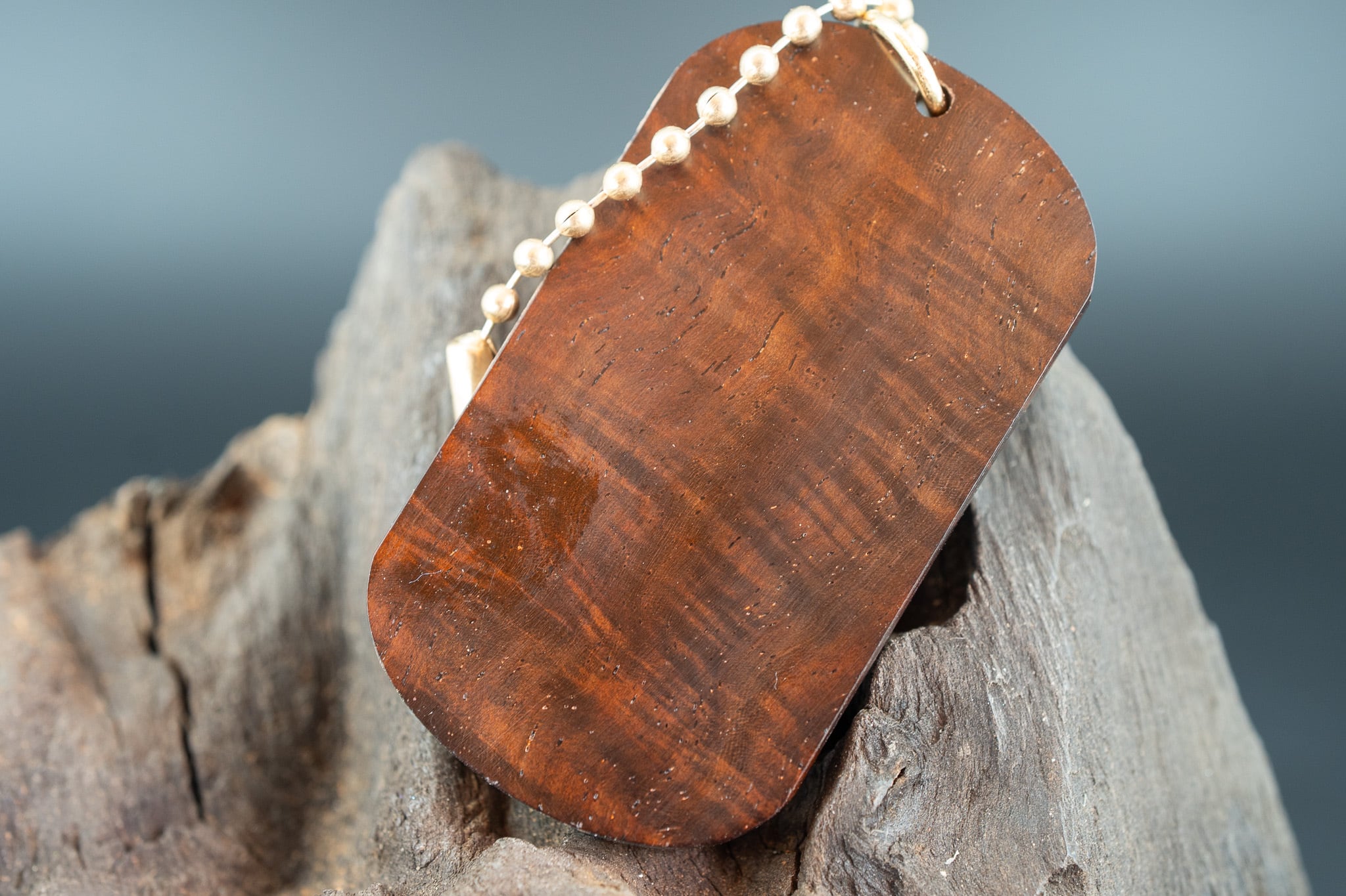 【21世紀最高峰の材】サイアミーズローズウッド マイクロカーリー ドッグタグ 象嵌 三日月とたぬき