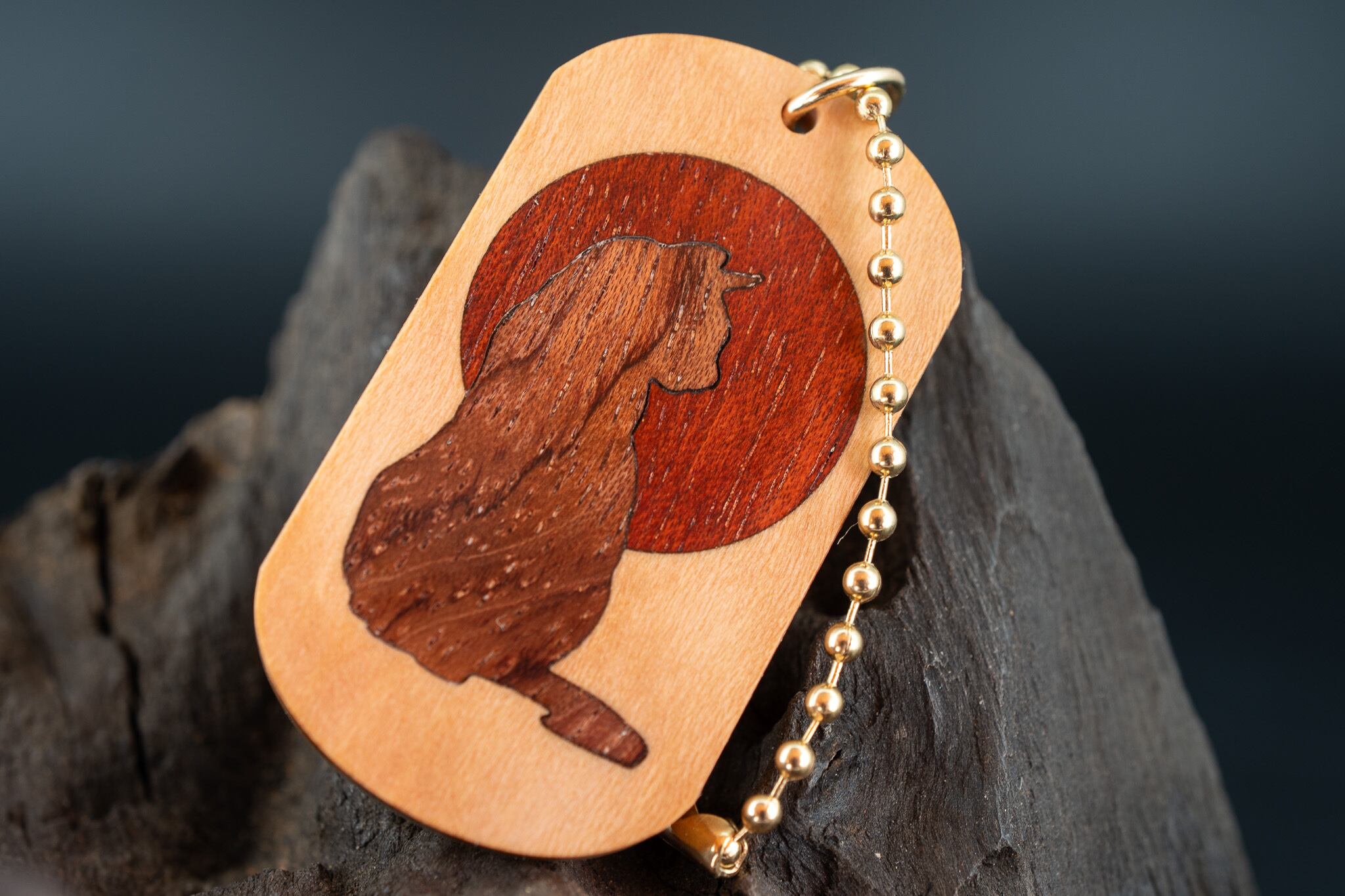 【庭木の王様】 木斛 (モッコク) ドッグタグ 象嵌 横を向く上品な猫