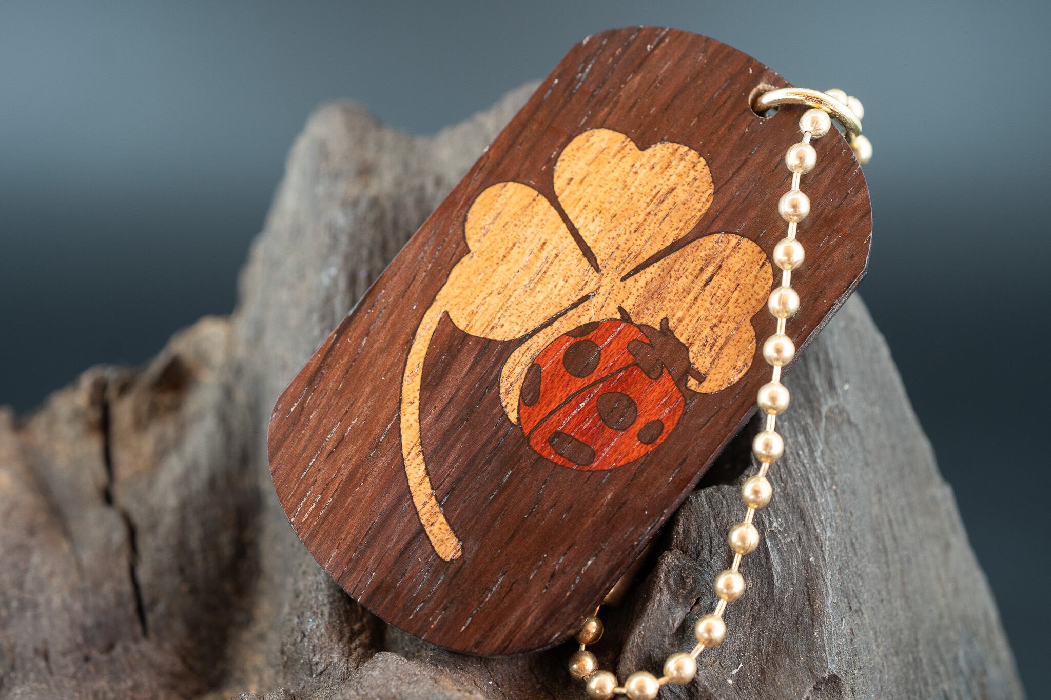 【音楽業界屈指の銘木】 ハカランダ ドッグタグ 象嵌 幸運を運ぶナナホシテントウ