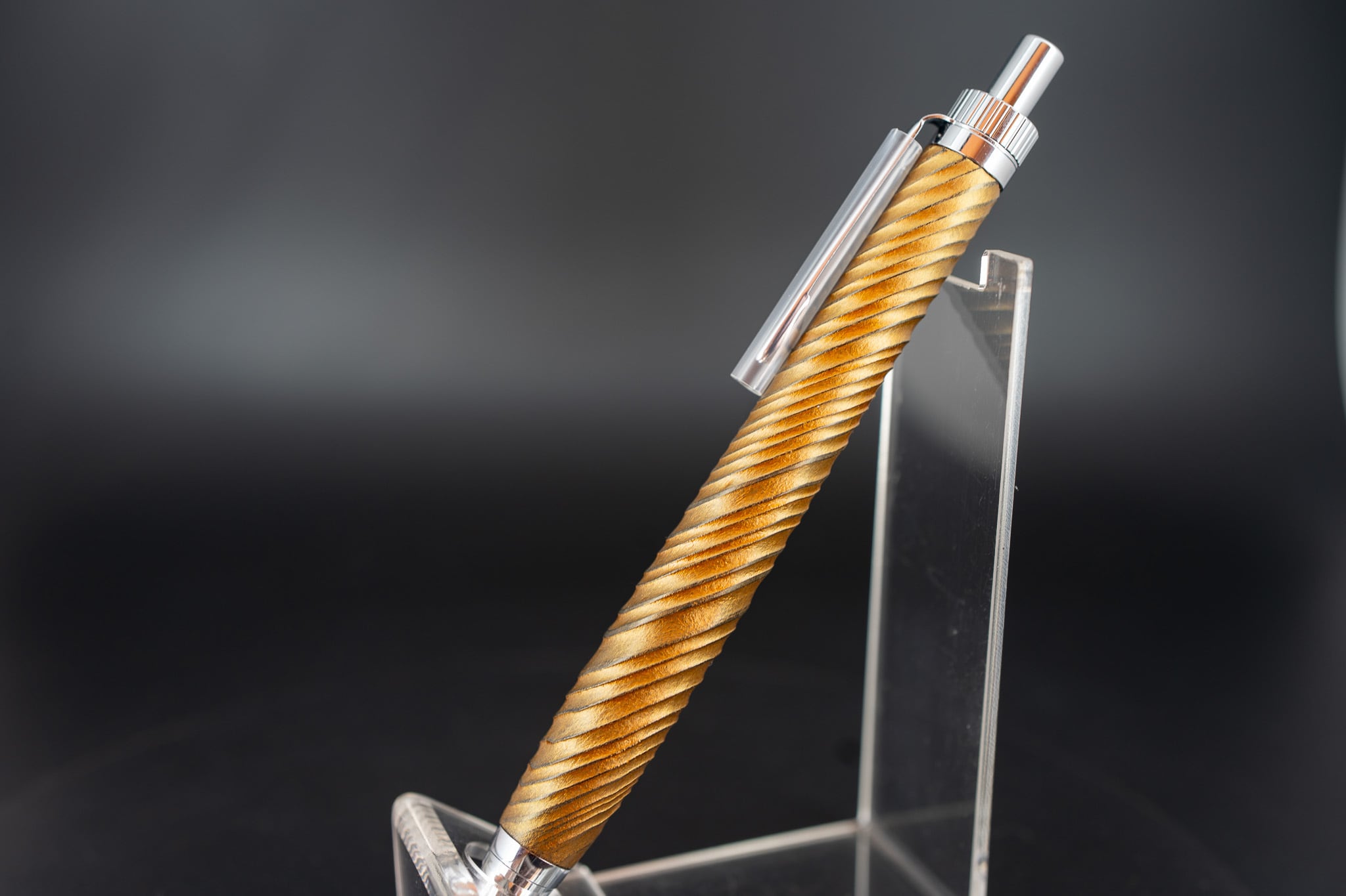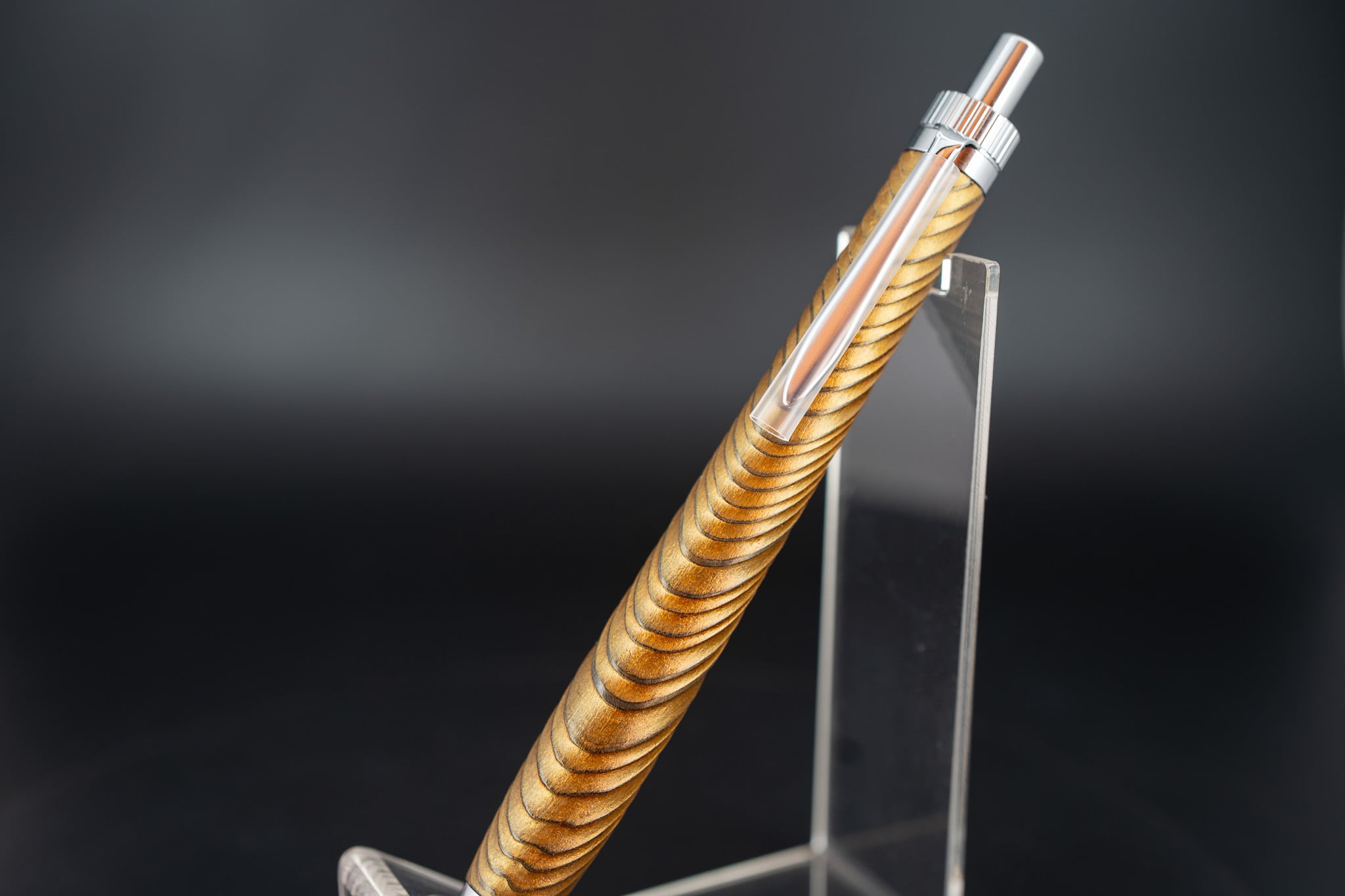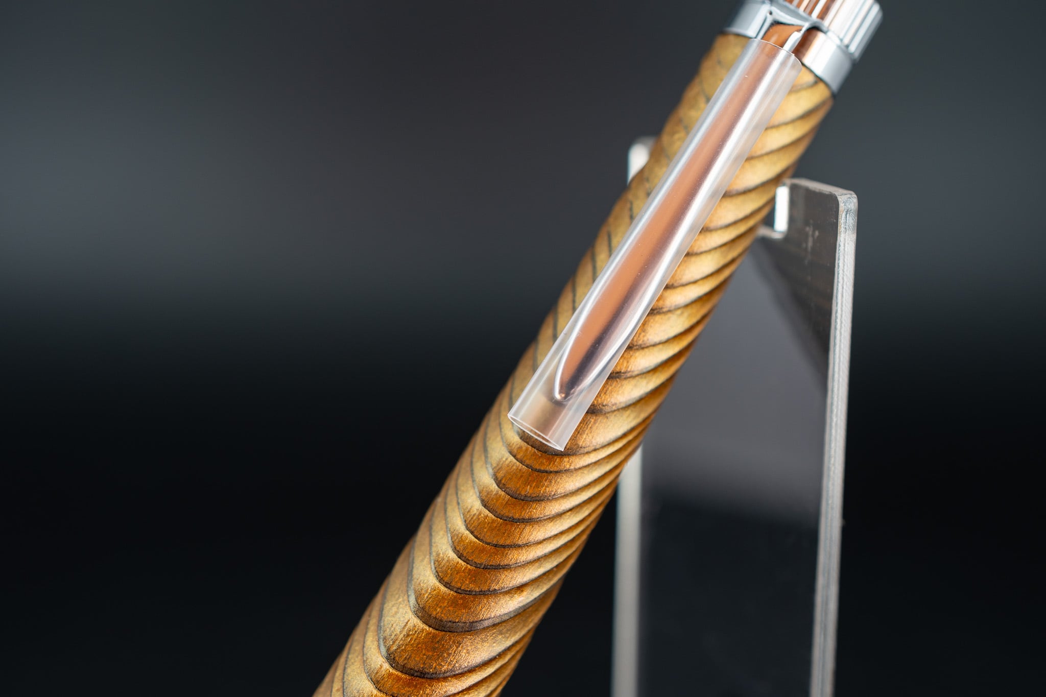 浮造りを施した美しい木目の屋久杉に、国産漆と金色の顔料を混ぜた漆を丁寧に塗り重ねました。
