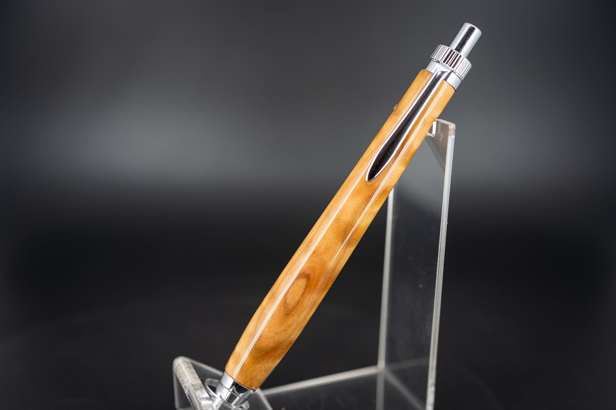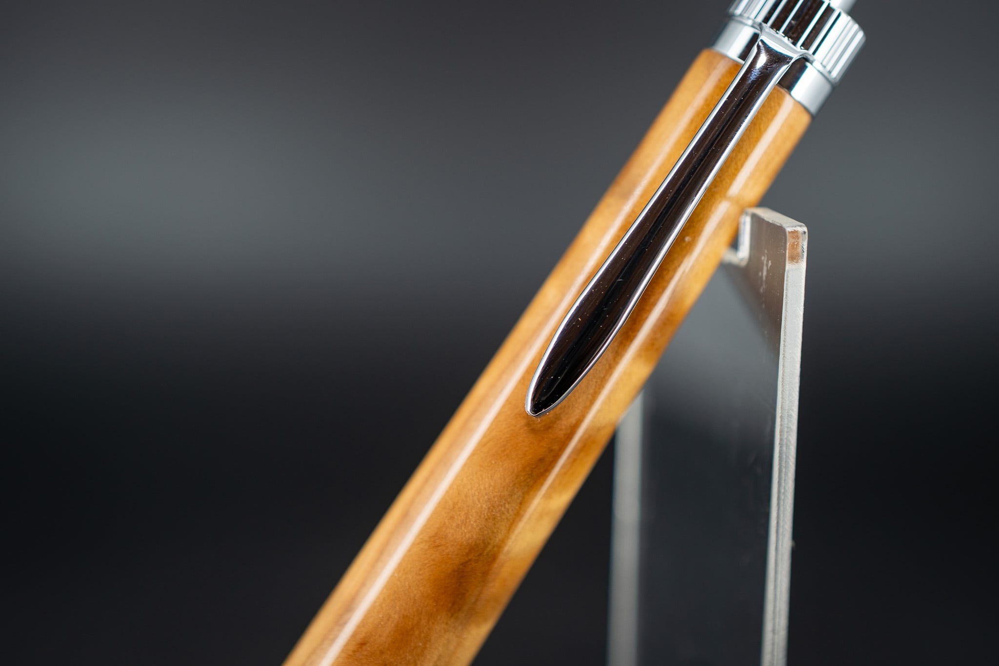 中でも油分を含み独特の杢目が現れる部位を使いペンに仕立てました。