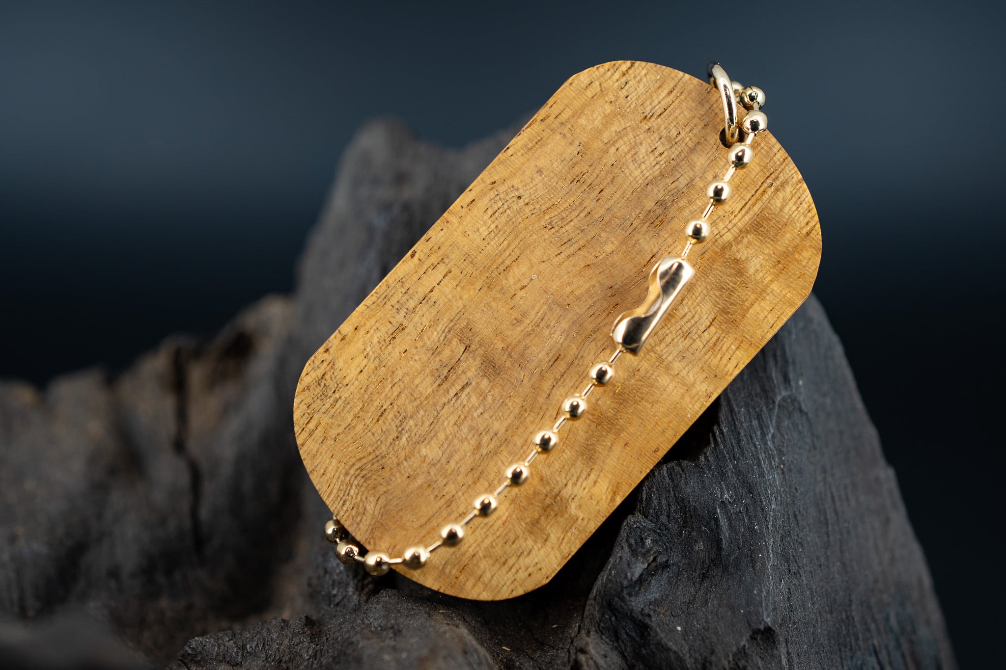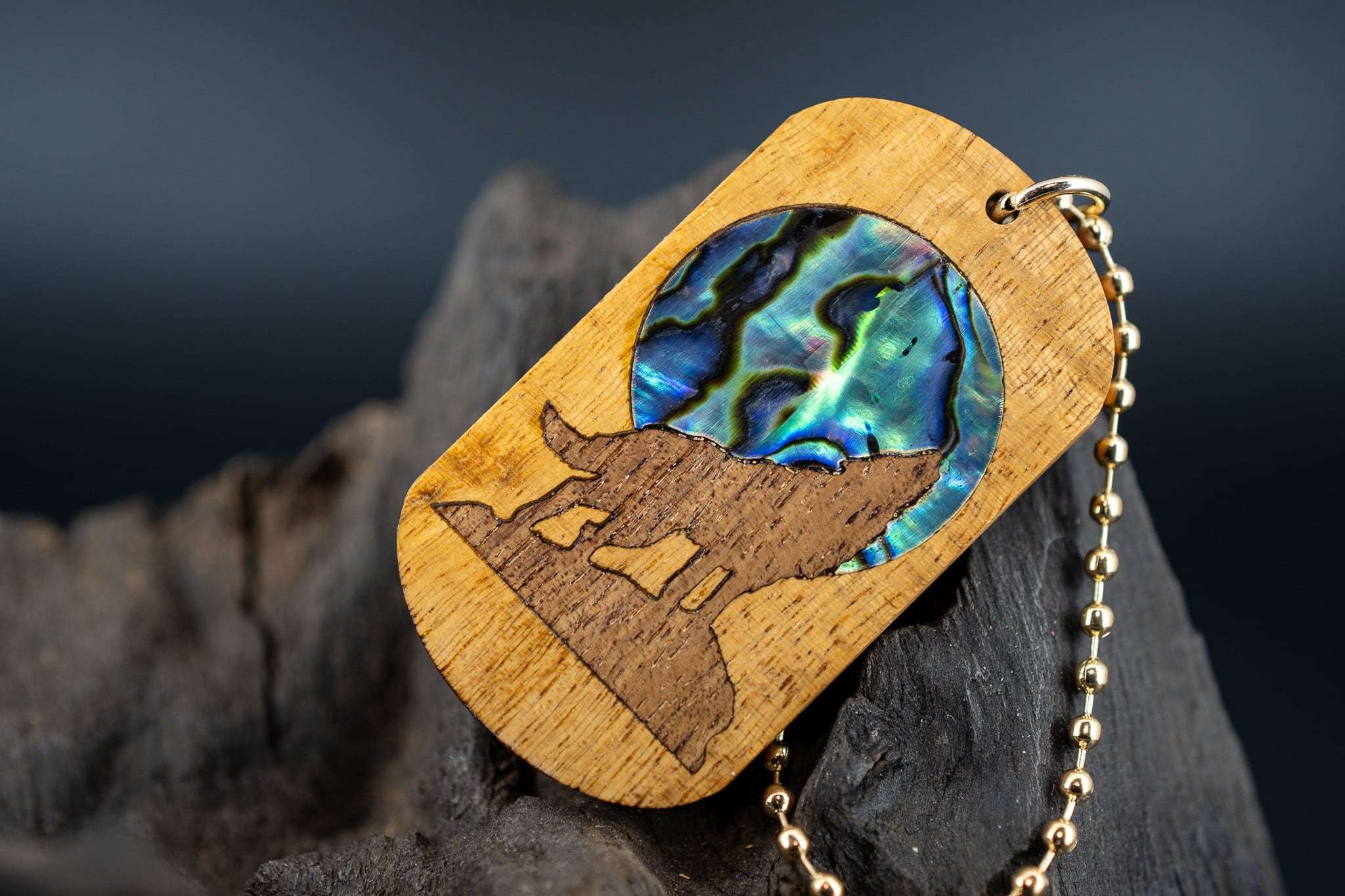 【光の木】 サテンウッド ドッグタグ 象嵌 月と狼