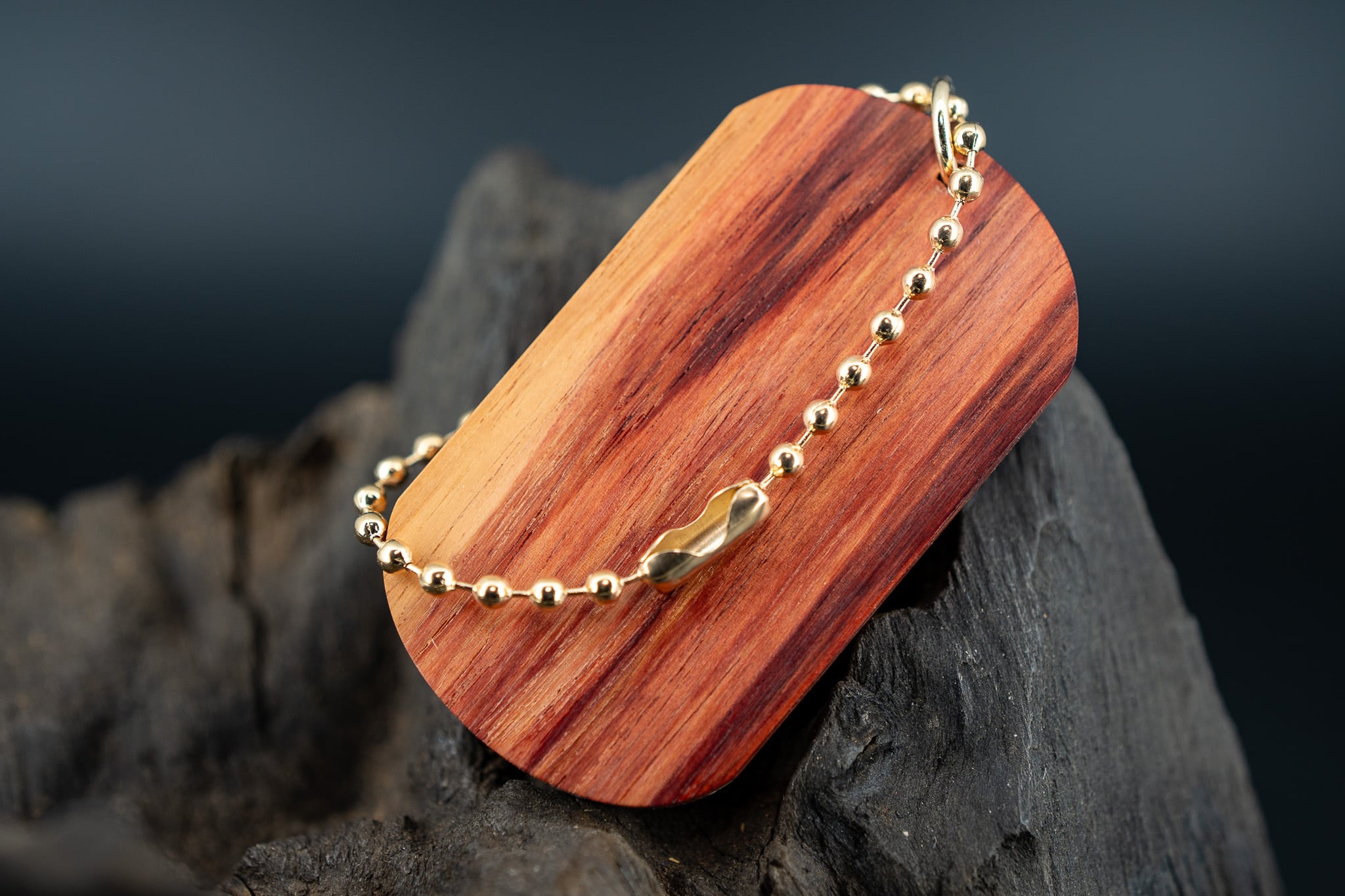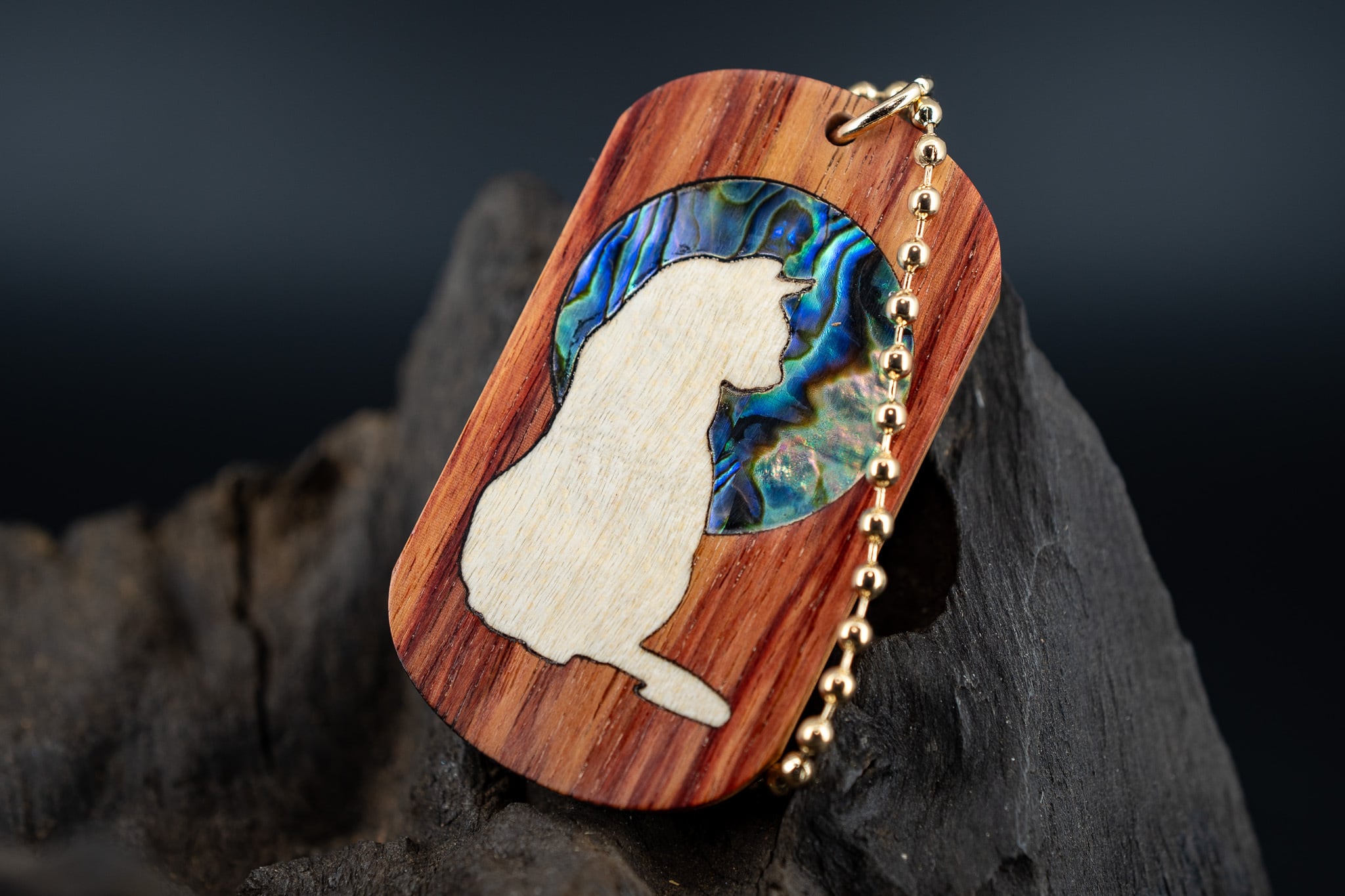 【 木材の女王】 チューリップウッド ドッグタグ 象嵌 横を向く上品な猫