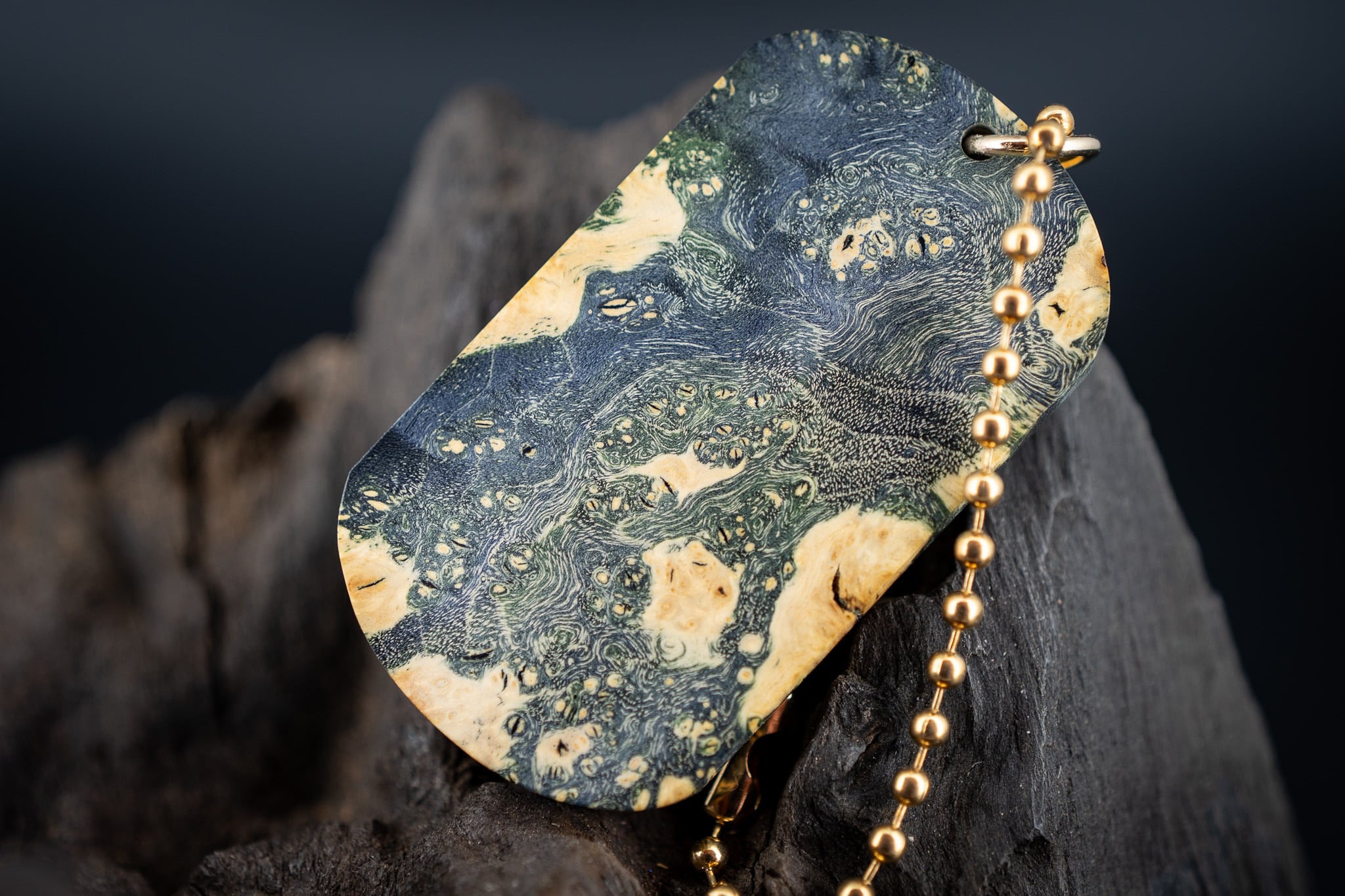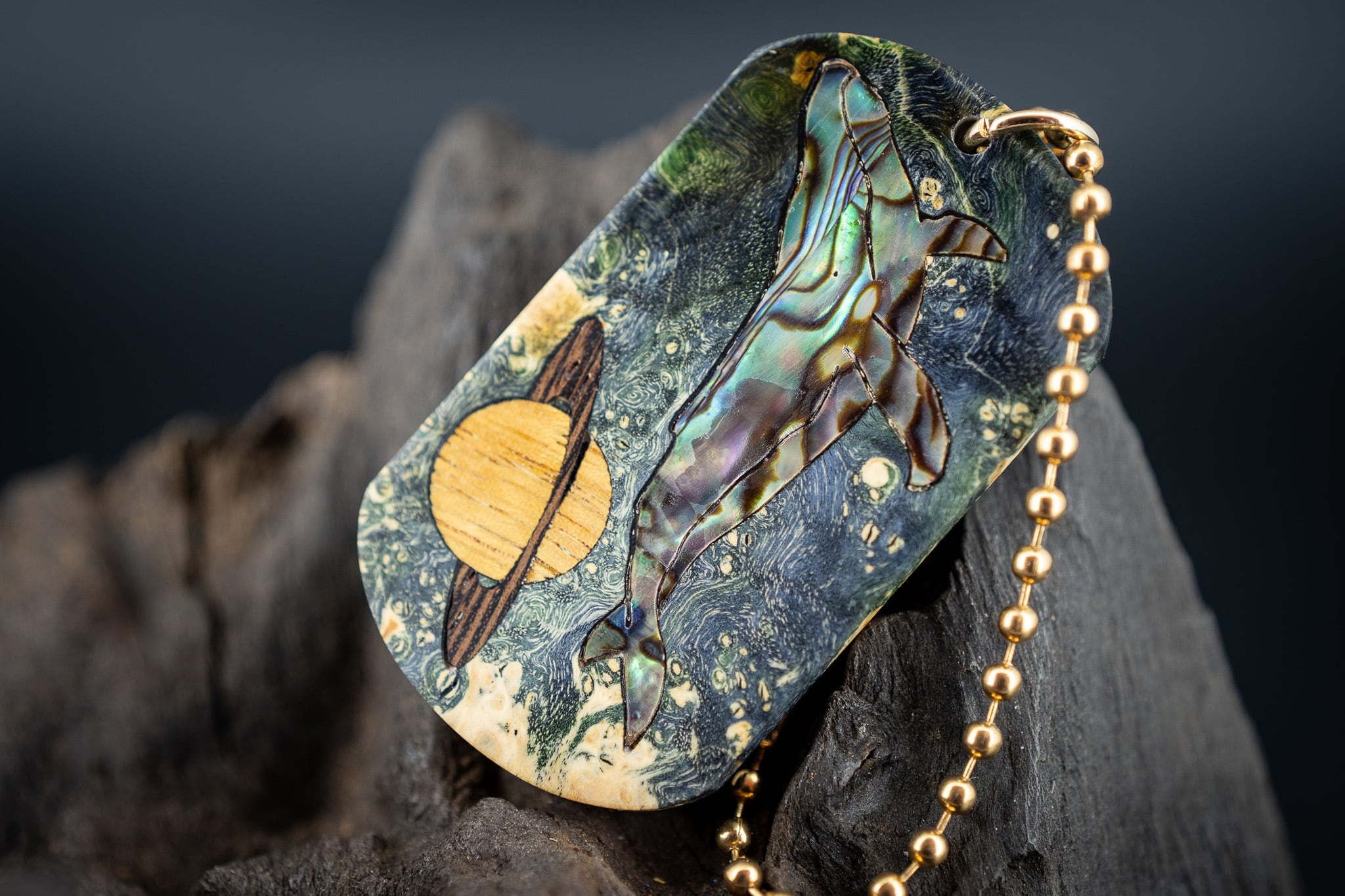 【カナダの象徴】ハードメープル 瘤杢 スタビライズウッド ドッグタグ 象嵌 勇魚と惑星