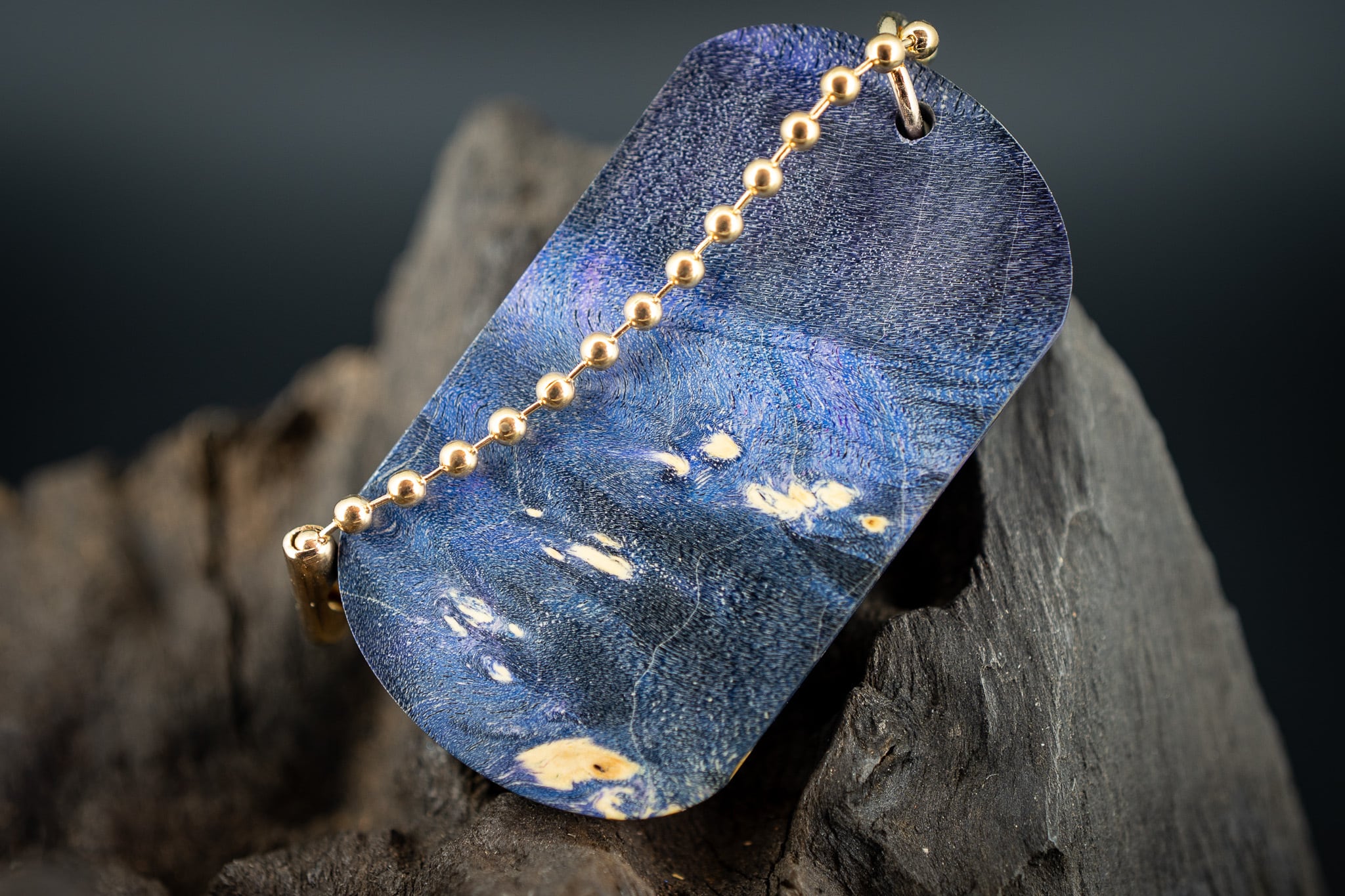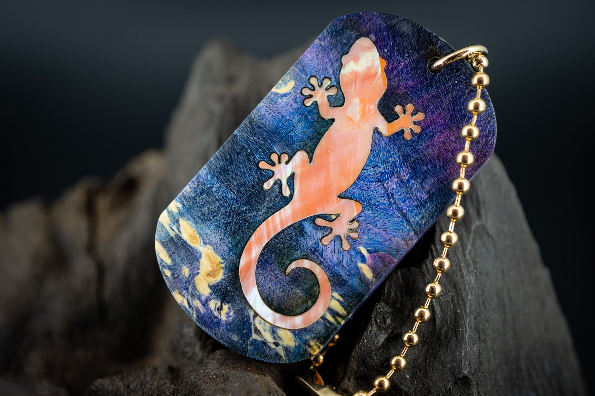 【カナダの象徴】ハードメープル 瘤杢 スタビライズウッド ドッグタグ 象嵌 木登りトカゲ