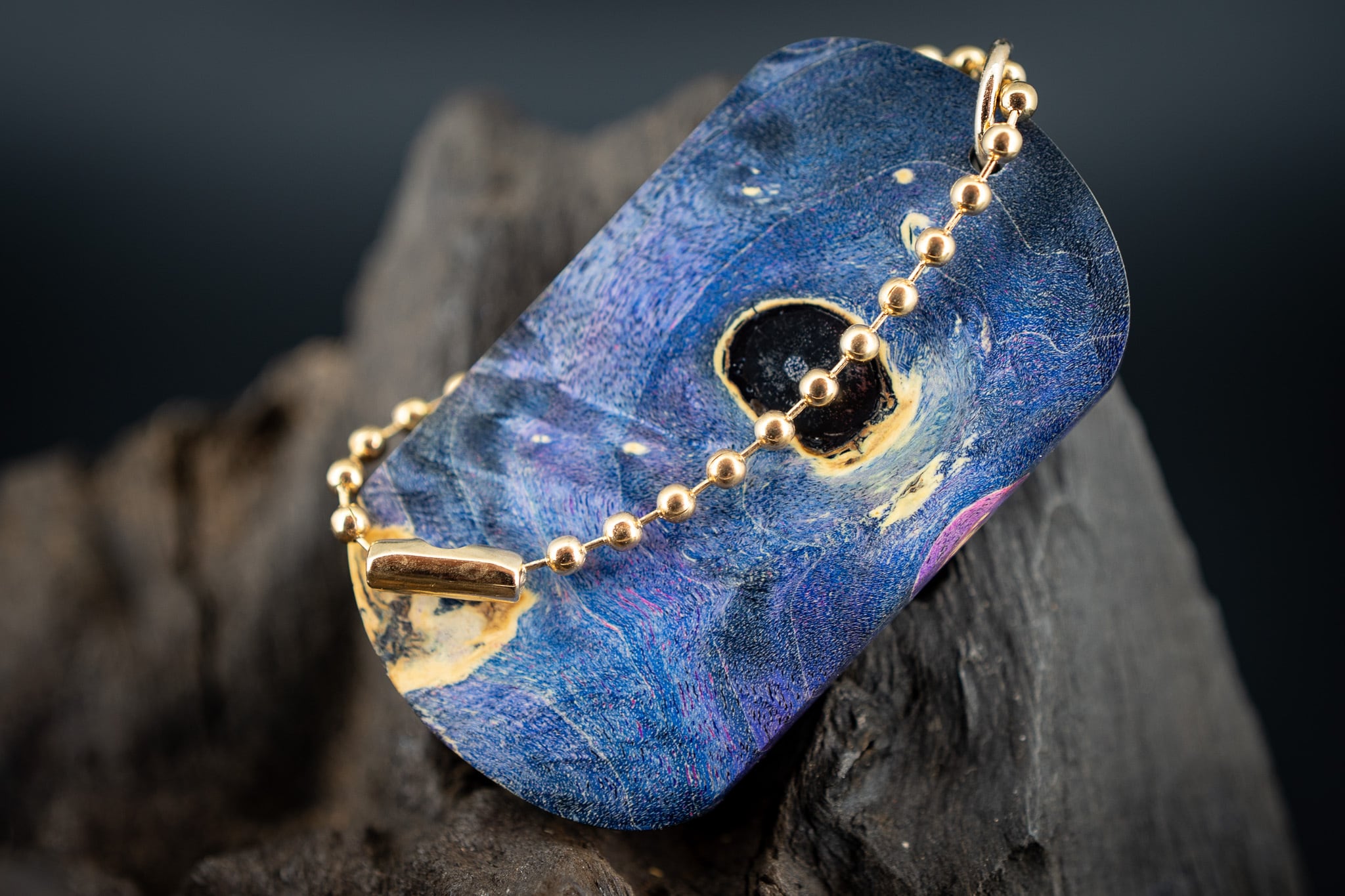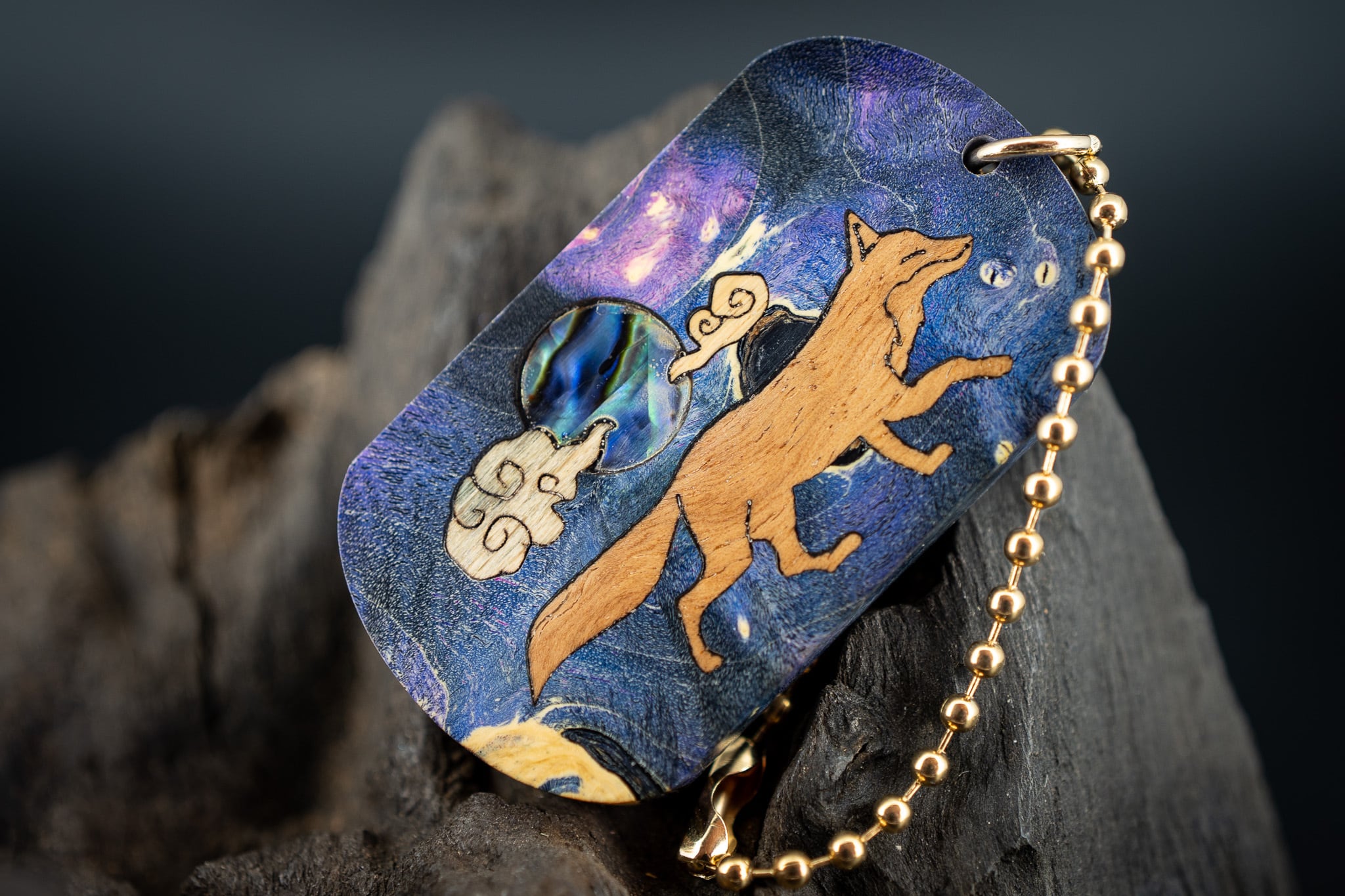 【カナダの象徴】ハードメープル瘤 スタビライズウッド ドッグタグ 象嵌 十五夜きつね